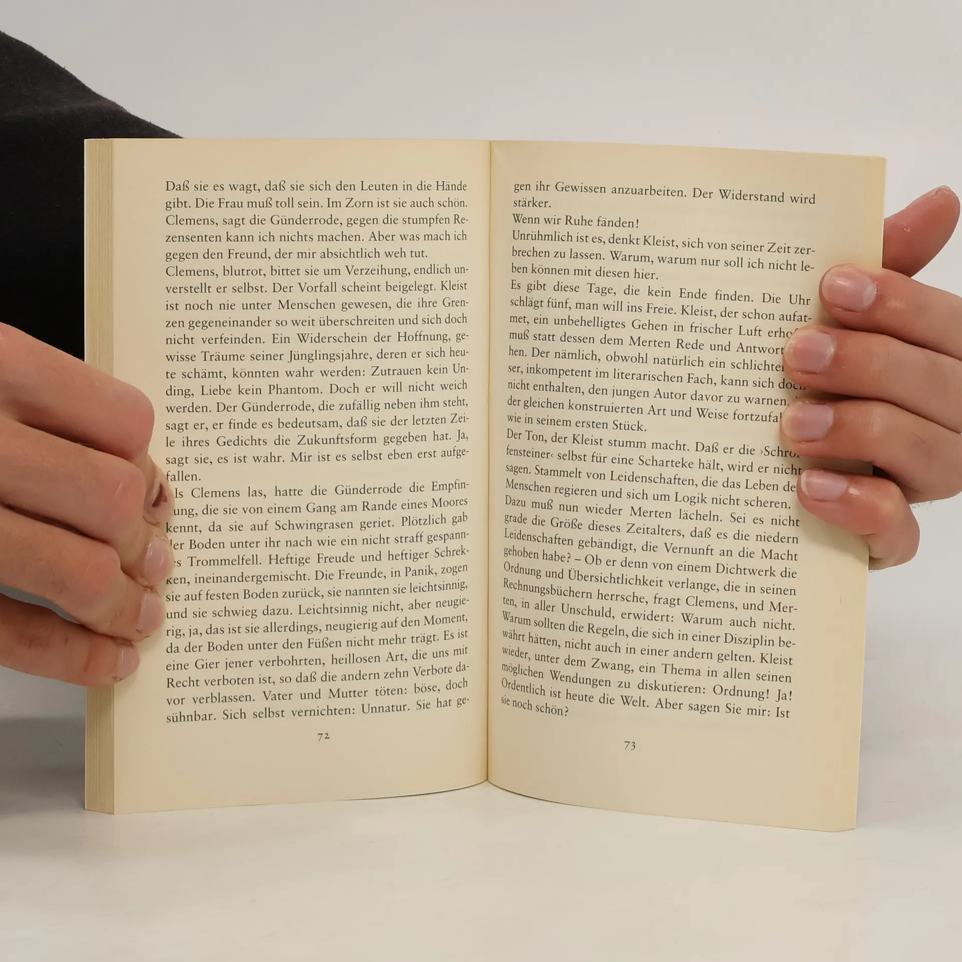 1804 sind sich Karoline von Günderrode und Heinrich von Kleist bei einer Teegesellschaft in Winkel am Rhein begegnet – oder hätten sich zumindest dort begegnen können. Christa Wolf läßt die beiden Außenseiter aufeinandertreffen, läßt sie nachdenken über den fehlenden Freiraum, das nicht lebbare Leben und zeigt die Parallelen zu ihrer eigenen Gegenwart. Christa Wolf, geboren 1929 in Landsberg/Warthe (Gorzów Wielkopolski), lebt in Berlin und Woserin, Mecklenburg-Vorpommern. Ihr Werk wurde mit zahlreichen Preisen, darunter dem Georg-Büchner-Preis und dem Deutschen Bücherpreis für ihr Gesamtwerk, ausgezeichnet.