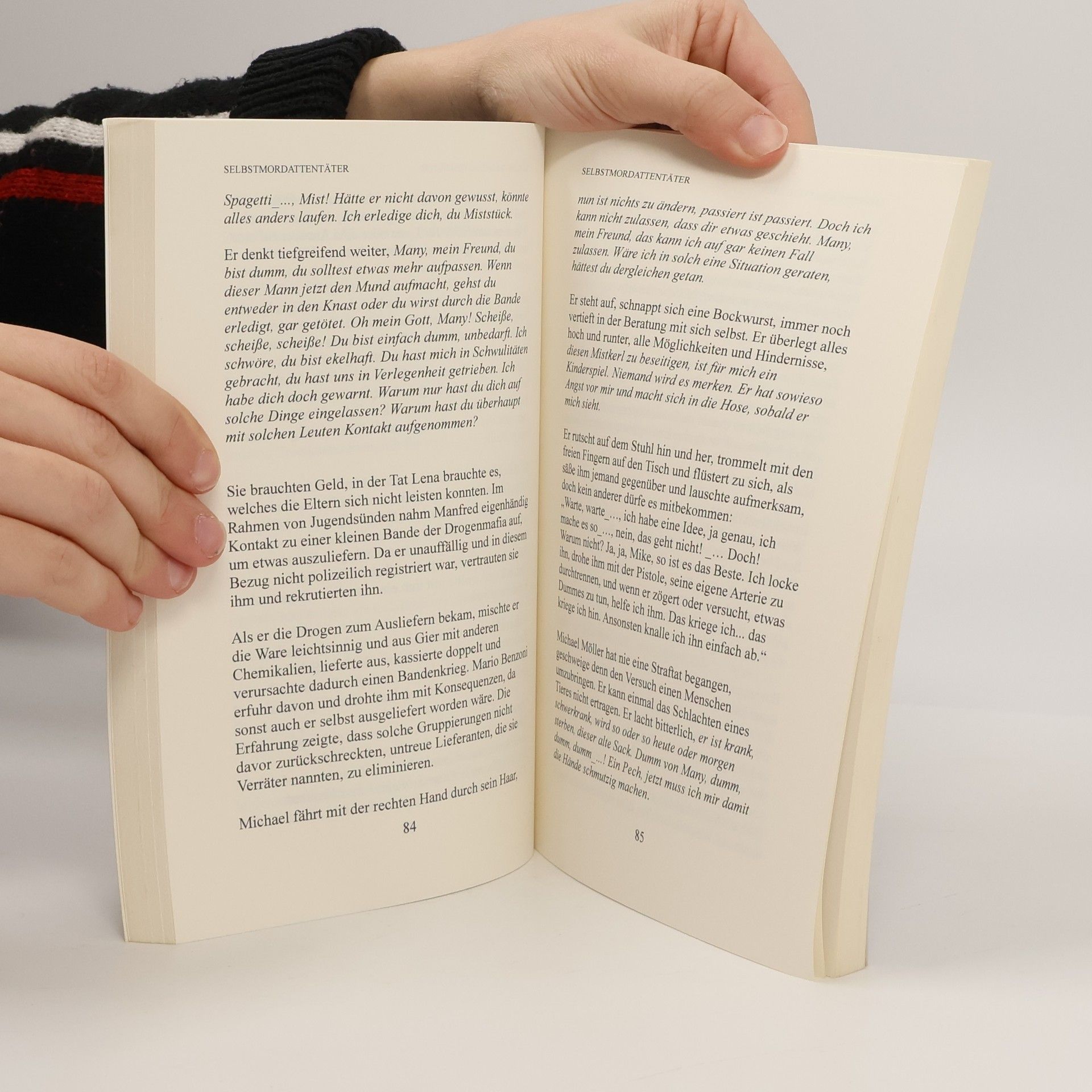 Die Sammlung umfasst acht Kurzgeschichten mit den Titeln: "Oma und ihre Weinrebe", "Kopfjagd", "Selbsterkenntnis", "Zwei für Eins", "Selbstopferung", "Selbstmordattentäter", "Stein der Versöhnung" und "Überraschung".