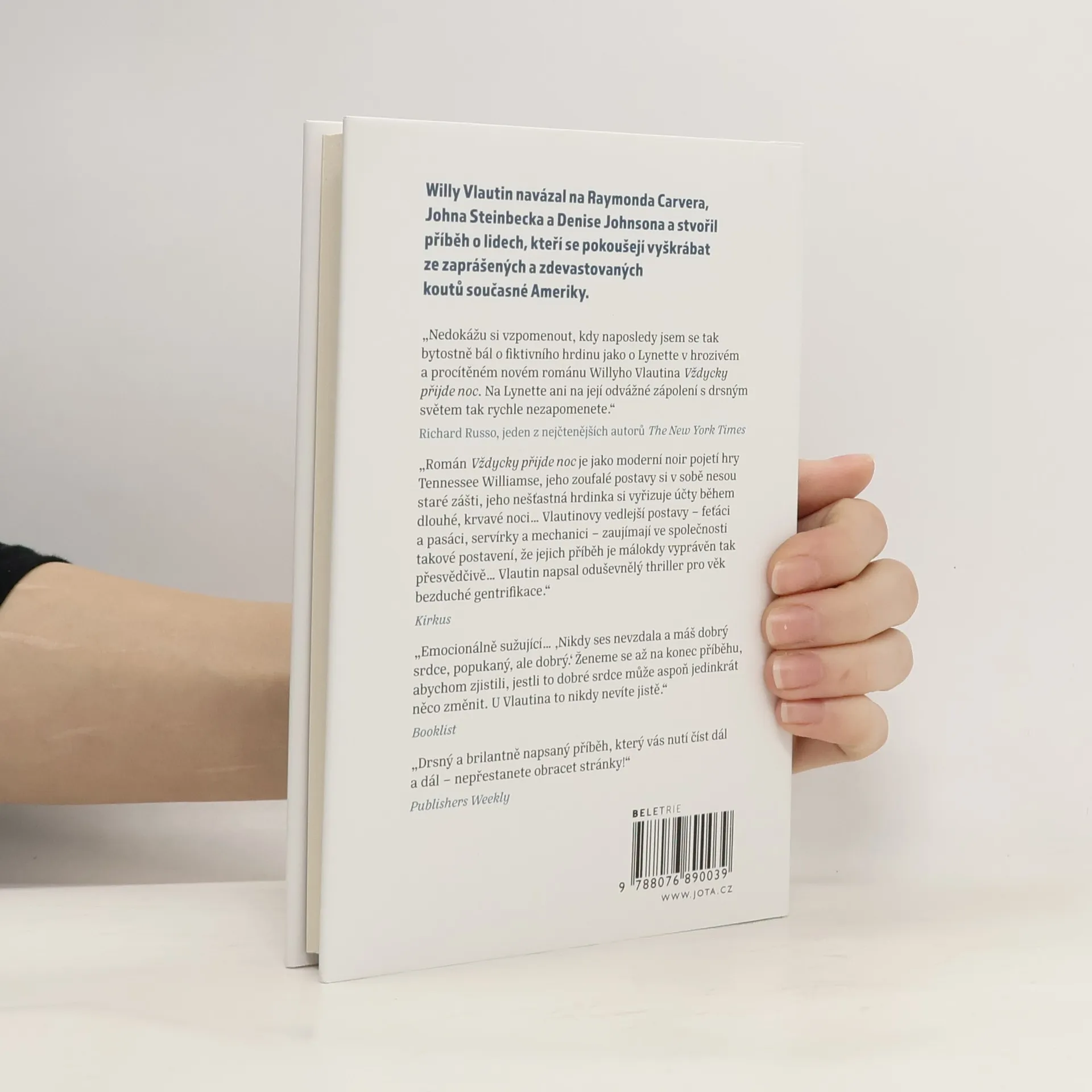 Román o sociálních problémech současných generacíRomán Vždycky přijde noc je příběh o snaze získat v nelítostném světě alespoň kousek jistoty. Mít dům, mít se kam vracet, mít něco svého, mít proč žít. Na pozadí dvou hektických deštivých dnů a nocí se před očima čtenáře odehrává celý životní příběh třicetileté Lynette, která je vyčerpaná zoufalým sháněním peněz na hypotéku i soužitím s egoistickou matkou a postiženým bratrem. Lynettinu naději rozpouští déšť, její zoufalství houstne s tmou, volání o pomoc zůstává bez odezvy a v kalném světle dne se ukazuje, že počítat s nejhorším nestačí. Zoufalá situace si žádá zoufalé činy a Lynette je zahnaná do kouta. Vládne tma noci, ale jestli opět vyjde slunce a probudí to lepší v nás, není vůbec jisté. Nezbývá než doufat v poblikávající jiskřičky naděje, jinak by život ztratil smysl.Willy Vlautin navázal na Raymonda Carvera a Johna Steinbecka a stvořil příběh o lidech s problémy, kteří se pokoušejí vyškrábat ze zaprášených a zdevastovaných koutů současné Ameriky.