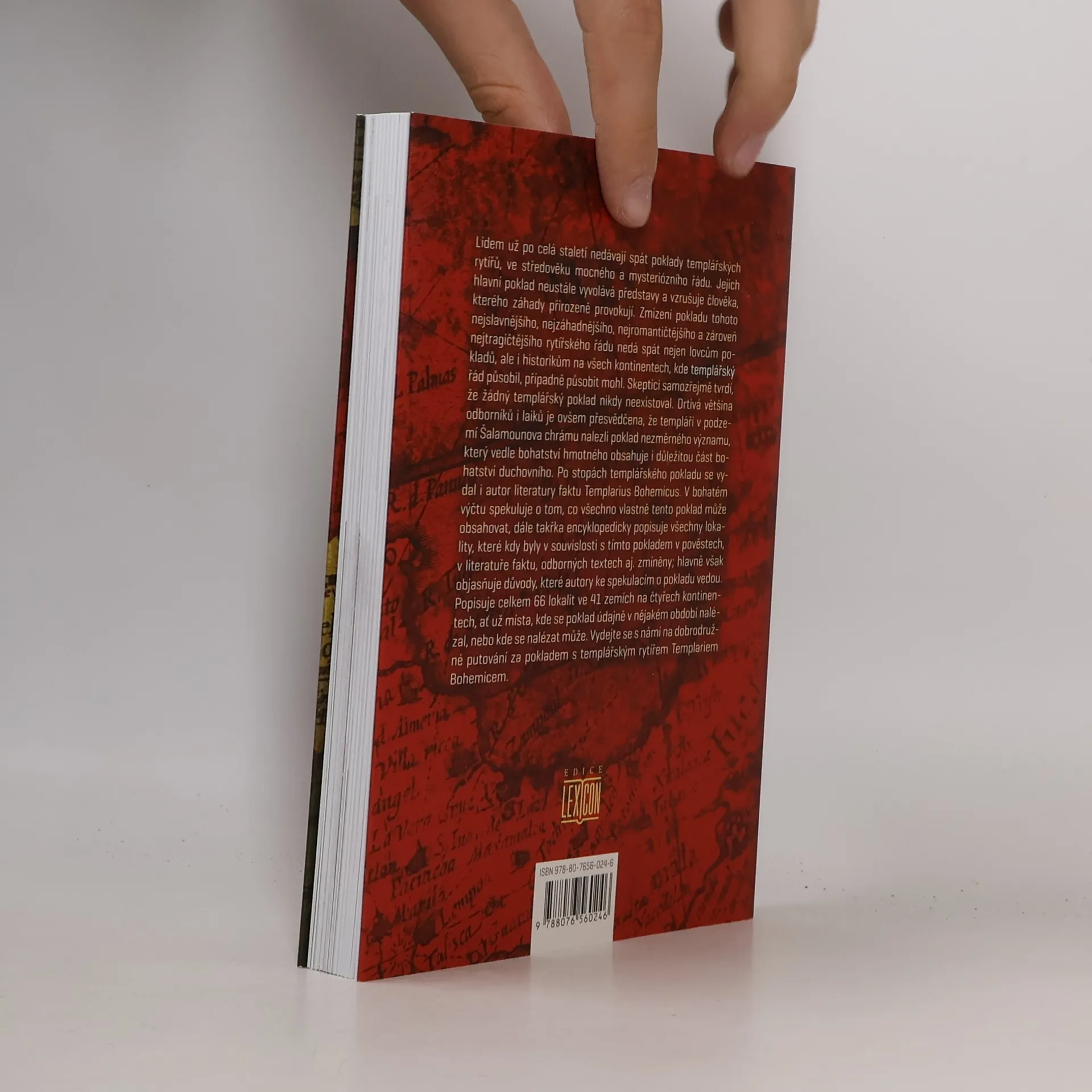 Největší středověké tajemství odolává už více než 700 let... Lidem už po celá staletí nedávají spát poklady templářských rytířů, ve středověku mocného a mysteriózního řádu. Jejich hlavní poklad neustále vyvolává představy a vzrušuje člověka, kterého záhady přirozeně provokují. Zmizení pokladu tohoto nejslavnějšího, nejzáhadnějšího, nejromantičtějšího a zároveň nejtragičtějšího rytířského řádu nedá spát nejen lovcům pokladů, ale i historikům na všech kontinentech, kde templářský řád působil, případně působit mohl. Skeptici samozřejmě tvrdí, že žádný templářský poklad nikdy neexistoval. Drtivá většina odborníků i laiků je ovšem přesvědčena, že templáři v podzemí Šalamounova chrámu nalezli poklad nezměrného významu, který vedle bohatství hmotného obsahuje i důležitou část bohatství duchovního. Po stopách templářského pokladu se vydal i autor literatury faktu Templarius Bohemicus. V bohatém výčtu spekuluje o tom, co všechno vlastně tento poklad může obsahovat, dále takřka encyklopedicky popisuje všechny lokality, které kdy byly v souvislosti s tímto pokladem v pověstech, v literatuře faktu, odborných textech aj. zmíněny; hlavně však objasňuje důvody, které autory ke spekulacím o pokladu vedou. Popisuje celkem 66 lokalit ve 41 zemích na čtyřech kontinentech, ať už místa, kde se poklad údajně v nějakém období nalézal, nebo kde se nalézat může...