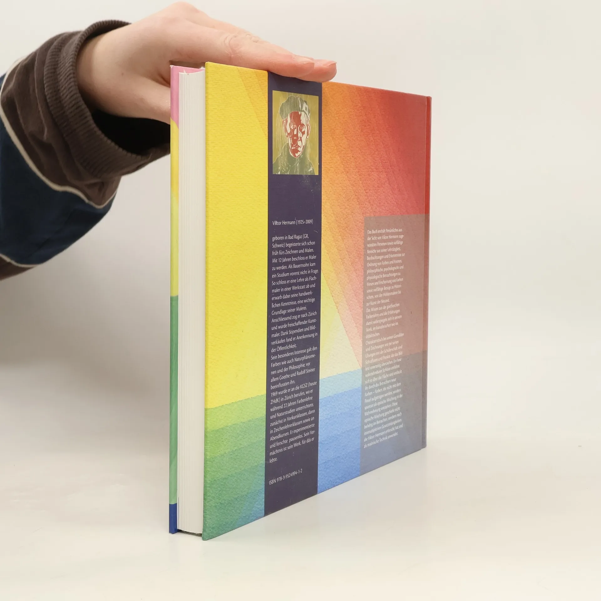 Der erste Teil des Buches widmet sich Viktor Hermanns Leben als Kunstpagoge und enthält Unterrichtserfahrungen, Gedichte und Beiträge von Schülern. Es folgt eine Übersicht zu Hermanns Schaffen und eine Analyse der Farbenlehre, die historische Bezüge sowie praktische Übungen im Unterricht behandelt, ergänzt durch Kommentare ehemaliger Schülerinnen.