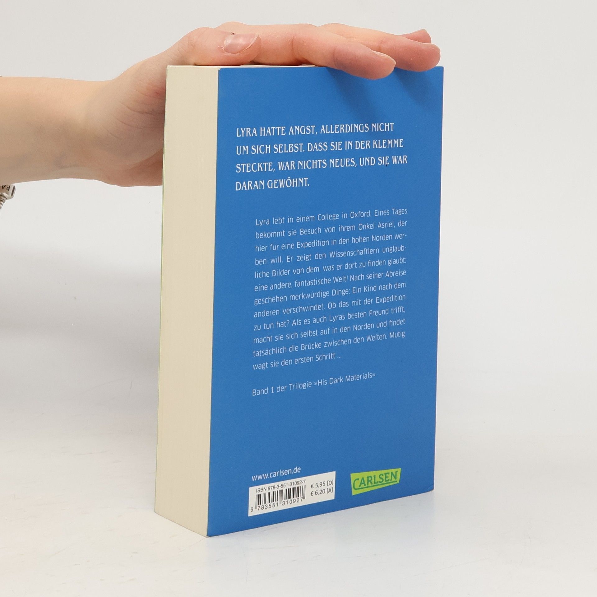 Lyra lebt in einem College in Oxford. Eines Tages bekommt sie Besuch von ihrem Onkel Asriel, der fur eine Expedition in den hohen Norden werben will. Er zeigt den Wissenschaftler unglaubliche Bilder von dem, was er dort zu finden glaubt; eine andere, fantastische Welt! Nach einer Abreise geschehen merkwurdige Dinge: Ein Kind nach dem anderen verschwindet. Ob das mit der Expedition zu tun hat? Als auch Lyras besten Freund trifft, macht sie sich selbst auf in den Norden und findet tatsachlich die Brucke zwischen den Welten. Mutig wagt sie den ersten Schritt.