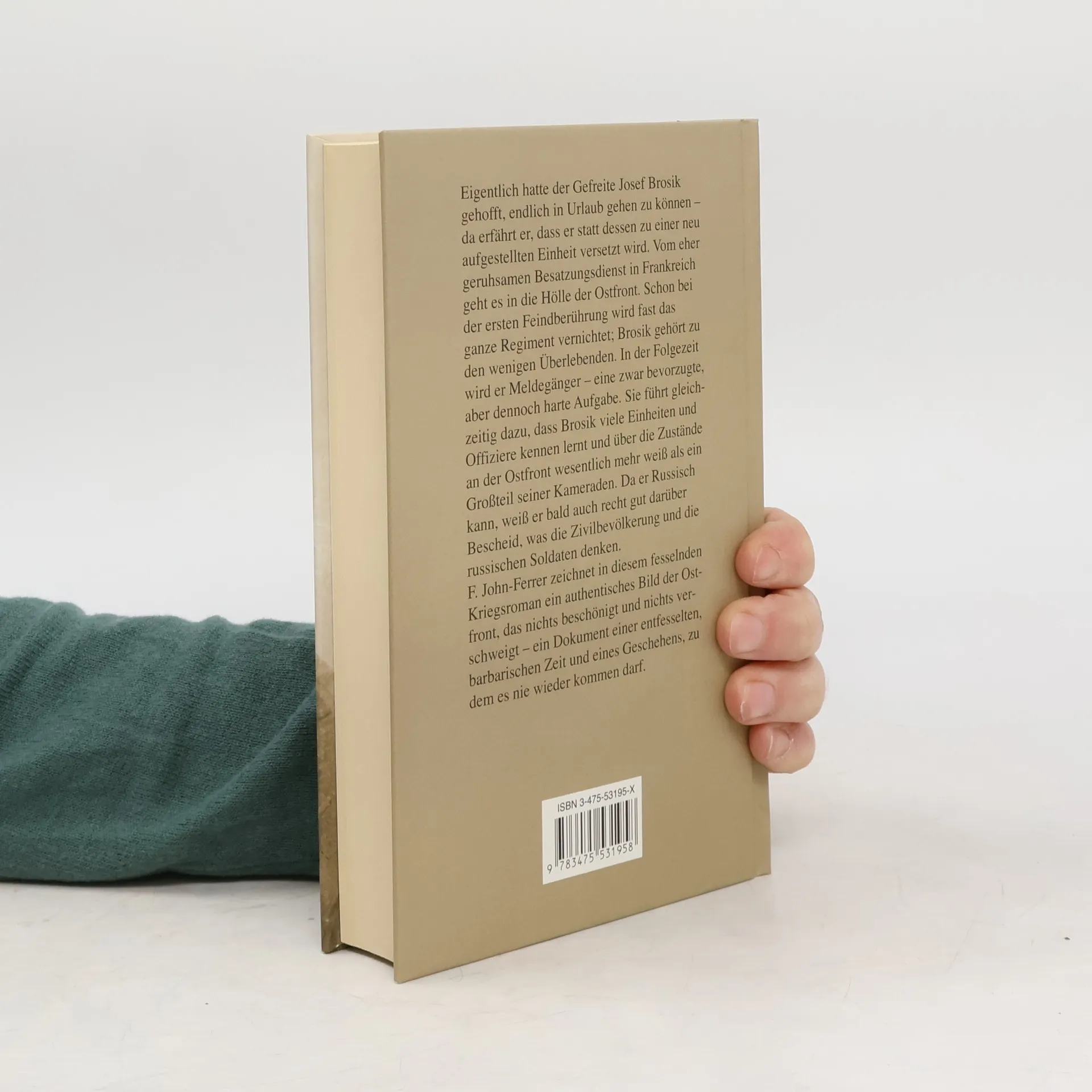 Der Gefreite Josef Brosik wird statt seines erhofften Urlaubs an die Ostfront versetzt, wo er als Meldegänger überlebt. Er lernt viele Einheiten und Offiziere kennen und erhält Einblicke in die Gedanken der Zivilbevölkerung und russischen Soldaten. F. John-Ferrer schildert authentisch die brutalen Zustände an der Ostfront.
