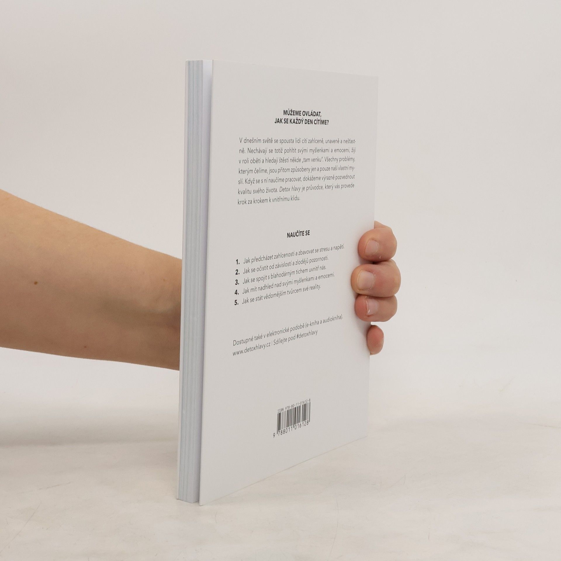 V dnešním světě se spousta lidí cítí zahlceně, unaveně a nešťastně. Nechávají se totiž pohltit svými myšlenkami a emocemi, žijí v roli oběti a hledají štěstí někde „tam venku“.Všechny problémy, kterým čelíme, jsou přitom způsobeny tím, jak používáme svoji mysl. Když se s ní naučíme pracovat, dokážeme výrazně pozvednout kvalitu svého života.Detox hlavy je průvodce, který vás v sedmi krocích provede k vnitřnímu klidu.