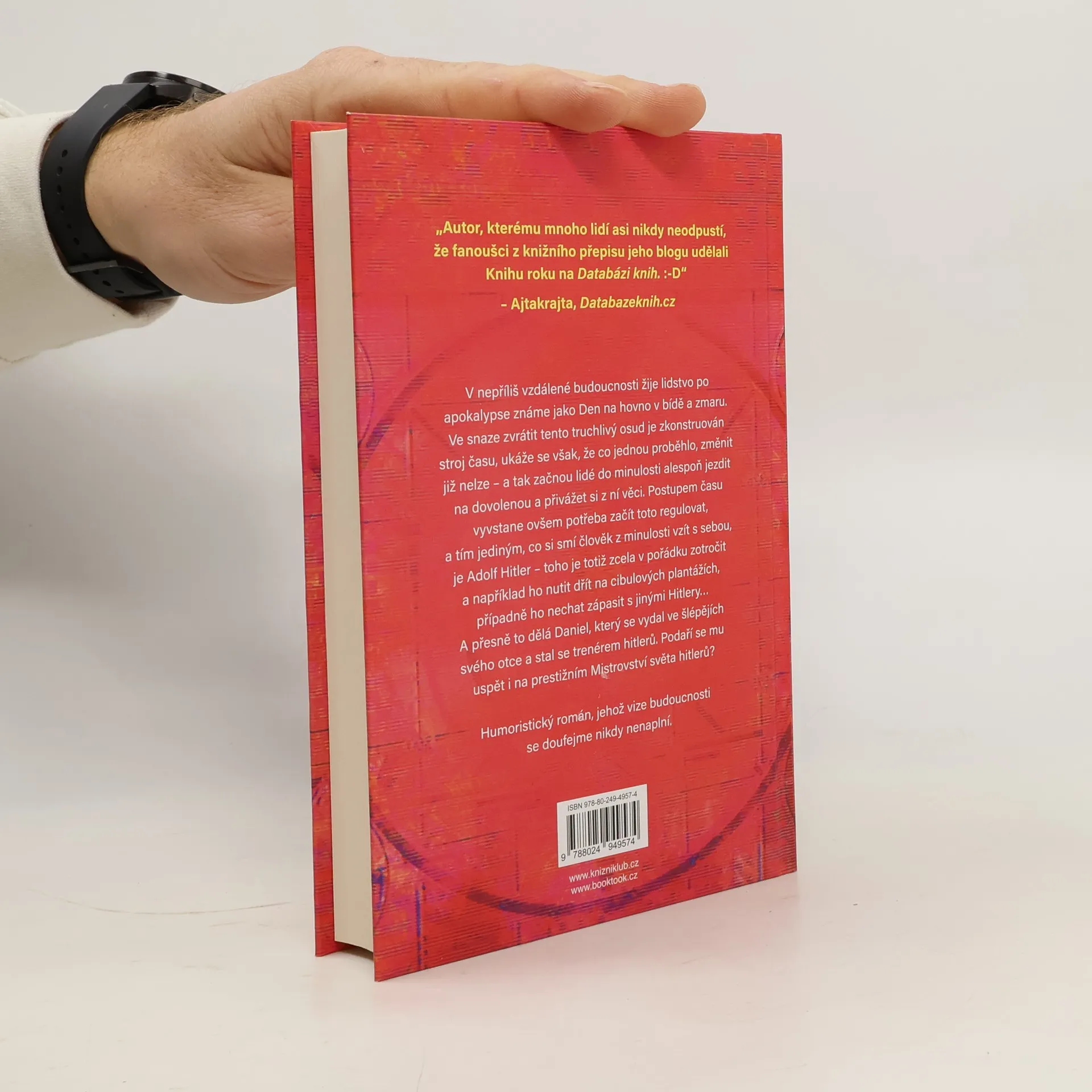 V nepříliš vzdálené budoucnosti žije lidstvo po apokalypse známé jako Den na hovno v bídě a zmaru. Ve snaze zvrátit tento truchlivý osud je zkonstruován stroj času, ukáže se však, že co jednou proběhlo, změnit již nelze – a tak začnou lidé do minulosti alespoň jezdit na dovolenou a přivážet si z ní věci. Postupem času je ovšem potřeba začít toto regulovat, a tak jedinou věcí, kterou si člověk smí z minulosti přivézt, je Adolf Hitler – toho je totiž zcela v pořádku zotročit a například ho nutit dřít na cibulových plantážích, případně ho nechat zápasit s jinými Hitlery… A přesně to dělá Daniel, který se vydal ve šlépějích svého otce a stal se trenérem Hitlerů. Podaří se mu uspět i na prestižním Mistrovství světa Hitlerů? Humoristický román, jehož vize budoucnosti se doufejme nikdy nenaplní.