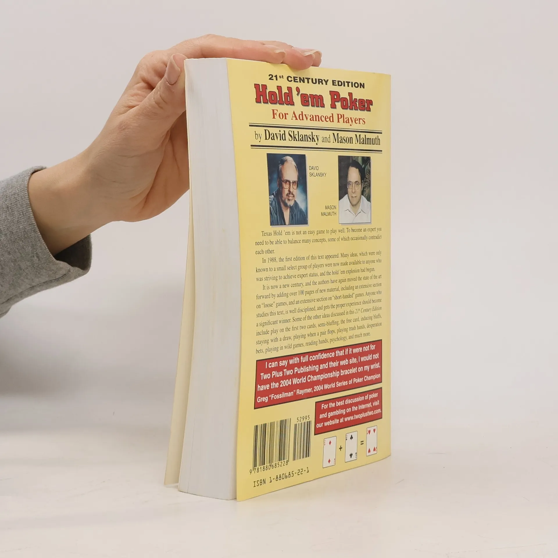 Texas Hold 'em is not an easy game to play well. To become an expert you must balance many concepts, some of which occasionally contradict each other. In 1988, the first edition appeared. Many ideas, which were only known to a small, select group of players, were made available to anyone who was striving to become an expert, and the hold 'em explosion had begun. It is now a new century, and the authors have again moved the state of the art forward by adding over 100 pages of new material, including extensive sections on "loose games," and "short-handed games." Anyone who studies this text, is well disciplined, and gets the proper experience should become a significant winner. Some of the other ideas discussed include play on the first two cards, semibluffing, the free card, inducing bluffs, staying with a draw, playing when a pair flops, playing trash hands, desperation bets, playing in wild games, reading hands, and psychology.