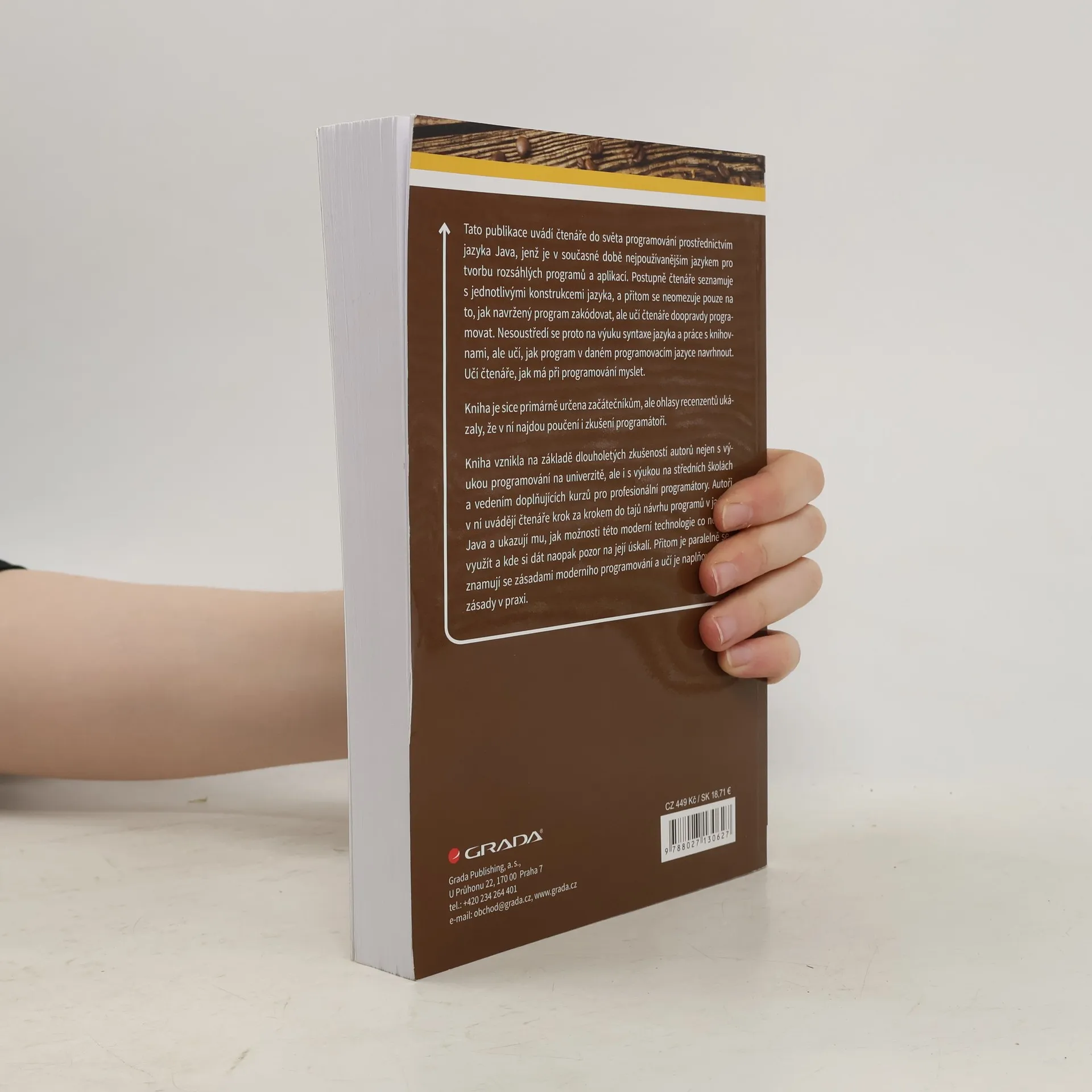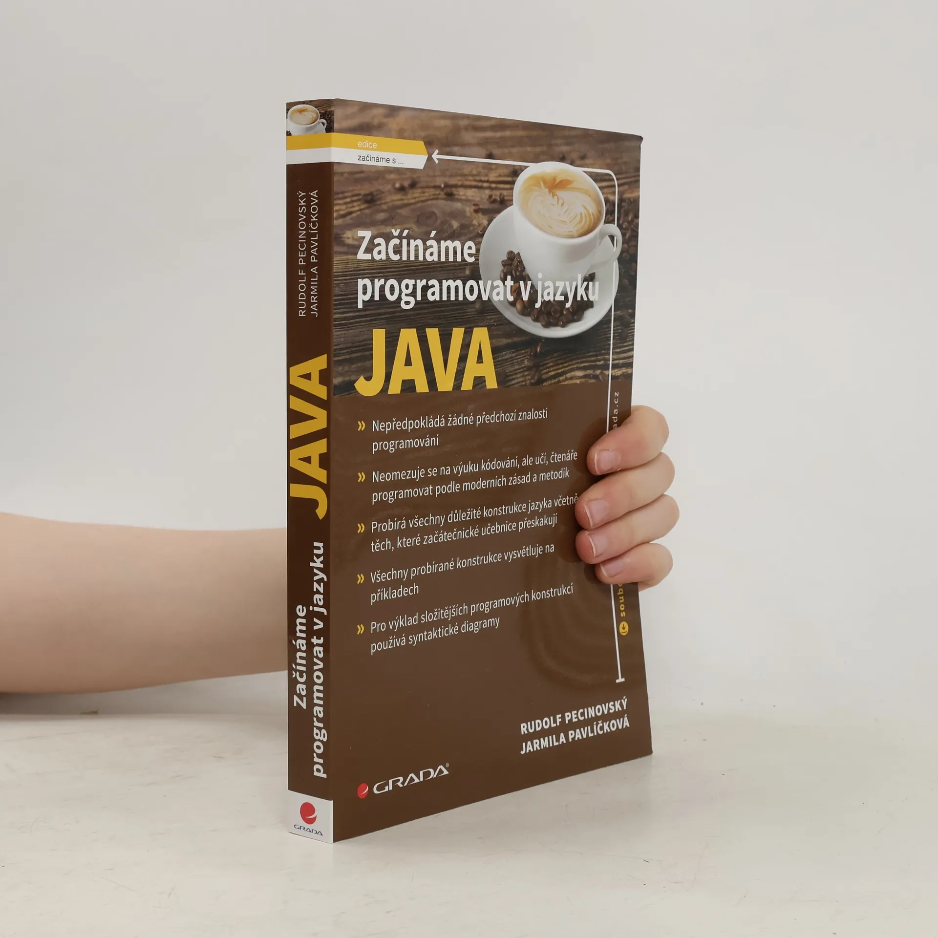 Tato publikace uvádí čtenáře do světa programování prostřednictvím jazyka Java, jenž je v současné době nejpoužívanějším jazykem pro tvorbu rozsáhlých programů a aplikací. Postupně čtenáře seznamuje s jednotlivými konstrukcemi jazyka, a přitom se neomezuje pouze na to, jak navržený program zakódovat, ale učí čtenáře doopravdy programovat. Nesoustředí se proto na výuku syntaxe jazyka a práce s knihovnami, ale učí, jak program v daném programovacím jazyce navrhnout. Učí čtenáře, jak má při programování myslet. Kniha je sice primárně určena začátečníkům, ale ohlasy recenzentů ukázaly, že v ní najdou poučení i zkušení programátoři. Kniha vznikla na základě dlouholetých zkušeností autorů nejen s výukou programování na univerzitě, ale i s výukou na středních školách a vedením doplňujících kurzů pro profesionální programátory. Autoři v ní uvádějí čtenáře krok za krokem do tajů návrhu programů v jazyce Java a ukazují mu, jak možnosti této moderní technologie co nejlépe využít a kde si dát naopak pozor na její úskalí. Přitom je paralelně seznamují se zásadami moderního programování a učí se je naplňovat v praxi.