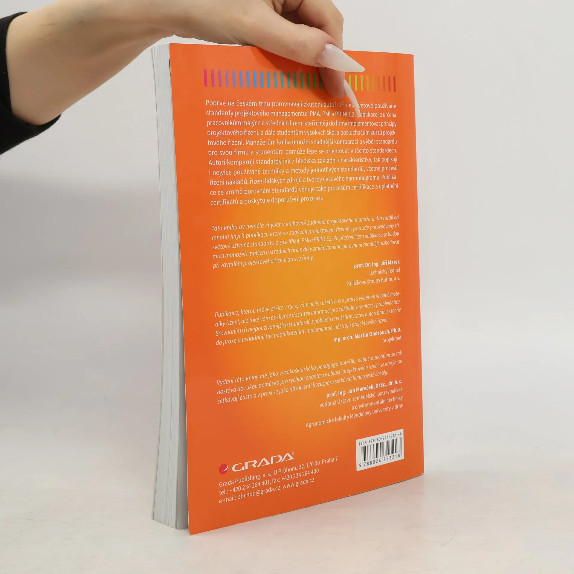 Poprvé na českém trhu porovnávají zkušení autoři tři celosvětově používané standardy projektového managementu: IPMA, PMI a PRINCE2. Publikace je určena pracovníkům malých a středních firem, kteří chtějí do firmy implementovat principy projektového řízení, a dále studentům vysokých škol a posluchačům kurzů projektového řízení. Manažerům kniha umožní snadnější komparaci a výběr standardu pro svou firmu a studentům pomůže lépe se orientovat v těchto standardech. Autoři komparují standardy jak z hlediska základní charakteristiky, tak popisují i nejvíce používané techniky a metody jednotlivých standardů, včetně procesů řízení nákladů, řízení lidských zdrojů a tvorby časového harmonogramu. Publikace se kromě porovnání standardů věnuje také procesům certifikace a uplatnění certifikátů a poskytuje doporučení pro praxi.