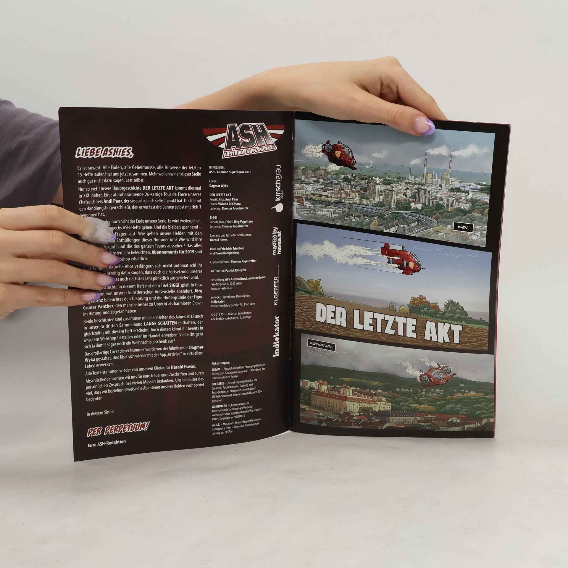 In "Austrian Superheroes #16 - Der letzte Akt" laufen zum Saisonfinale alle offenen Handlungsstränge zusammen. Es werden Fragen zu den Manipulationen des Basilisken, mysteriösen Spuren und den Geheimnissen der alten Superheldengeneration aufgeworfen.