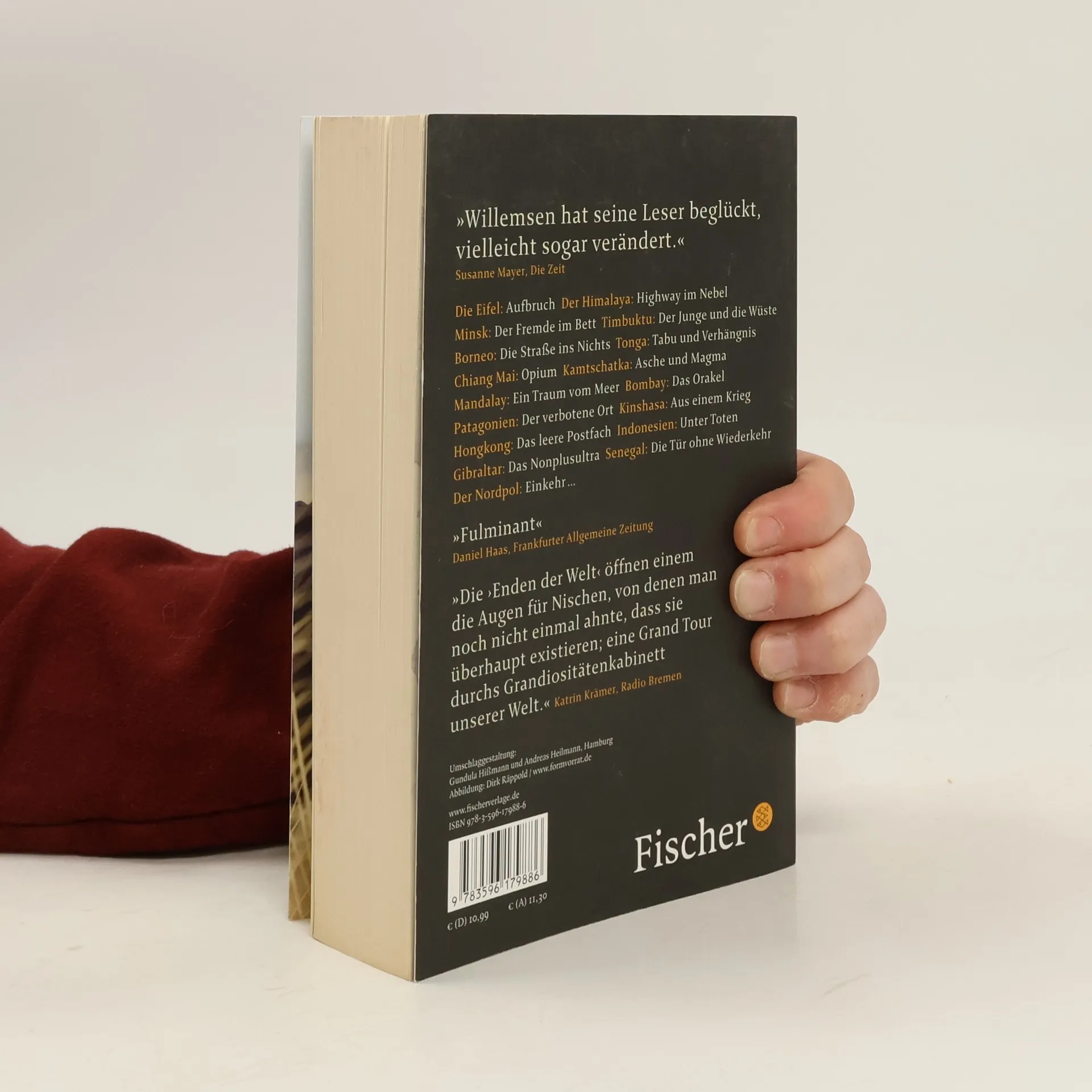 Auf fünf Erdteilen war Roger Willemsen unterwegs, um seine ganz persönlichen Enden der Welt zu finden. Manchmal waren es die großen geographischen: das Kap in Südafrika, Patagonien, der Himalaja, die Südsee, der Nordpol. Manchmal waren es aber auch ganz einzigartige, individuelle Endpunkte: ein Bordellflur in Bombay, ein Bett in Minsk, ein Fresko des Jüngsten Gerichts in Orvieto, eine Behörde im Kongo. Immer aber geht es in diesen grandiosen literarischen Reisebildern auch um ein Enden in anderem Sinn: um ein Ende der Liebe und des Begehrens, der Illusionen, der Ordnung und Verständigung. Um das Ende des Lebens – und um den Neubeginn. Die Eifel: Aufbruch – Der Himalaya: Highway im Nebel – Minsk: Der Fremde im Bett – Timbuktu: Der Junge und die Wüste – Borneo: Die Straße ins Nichts – Tonga: Tabu und Verhängnis – Chiang Mai: Opium – Kamtschatka: Asche und Magma – Mandalay: Ein Traum vom Meer – Bombay: Das Orakel – Patagonien: Der verbotene Ort – Kinshasa: Aus einem Krieg – Hongkong: Das leere Postfach – Indonesien: Unter Toten – Gibraltar: Das Nonplusultra – Senegal: Die Tür ohne Wiederkehr – Der Nordpol: Einkehr …