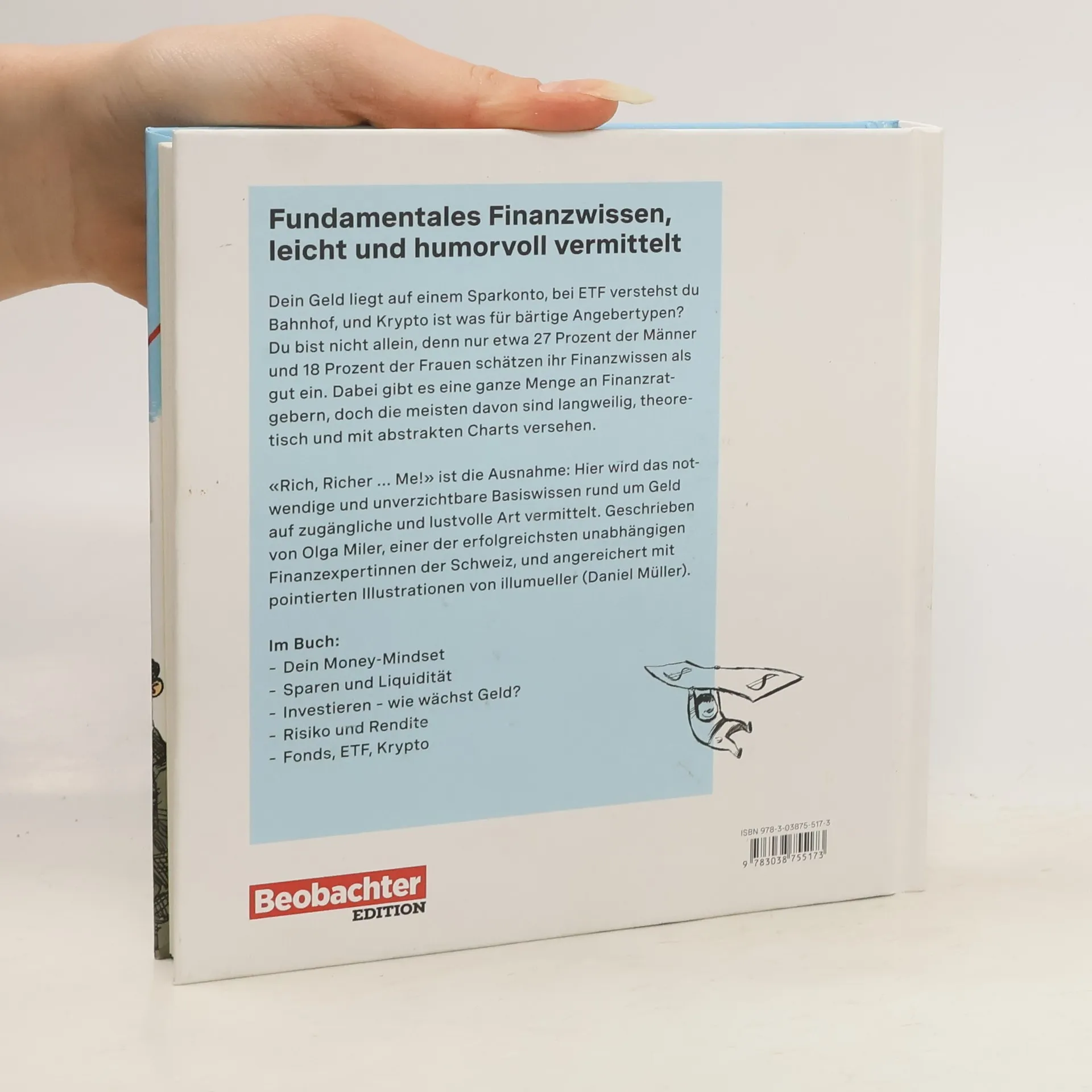 «Rich, richer… me» ist ein praxisorientierter Ratgeber von Olga Miler, der auf humorvolle Weise essentielles Finanzwissen vermittelt. Anders als viele theoretische Finanzbücher, bietet es zugängliche Informationen und wird durch pointierte Illustrationen von illumueller ergänzt.