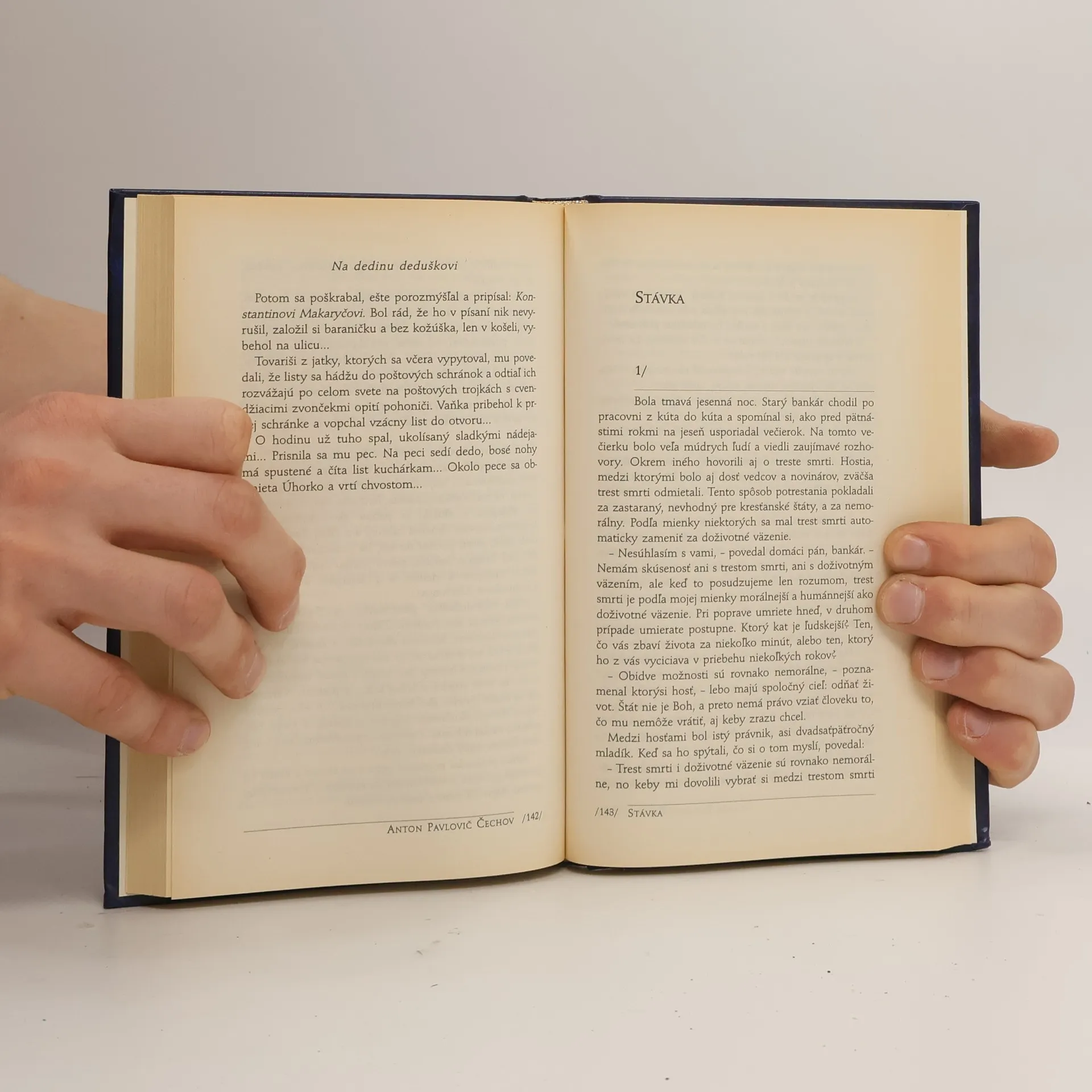 A.P. Čechov, tento vzdelaný lekár a vynikajúci znalec ľudských duší, ale najmä slabostí, mal mimoriadny pozorovací dar. Vedel vydolovať z hlbokých vášní a drám nečakanú zápletku pre svoju poviedku či novelu (Dáma zo psíkom, Stávka, Staroba). No jeho satiricko-ironický pohľad sa upieral aj na úplne všedné „veci a vecičky“ dňa a zo zdanlivo bežnej, hoci aj uličnej situácie urobil literárny klenot (Chameleón, Kniha sťažností, Tučný a chudý). Čechov mal pochopenie pre ľudské nedostatky, pozeral na svet láskavými očami a z jeho vážnych, aj keď akoby úsmevných poviedok sála nesmierny súcit s najslabšími (Vaňka, Dušička). Zostavovateľka sa pokúsila predstaviť A.P. Čechova ako prozaika, ktorý má svojím myslením a brilantným stvárnením postáv ešte stále náskok pred mnohými súčasnými autormi. A to je najpresvedčivejší dôkaz jeho talentu. Vtipný doslov k tomuto výberu napísala Mária Kusá.