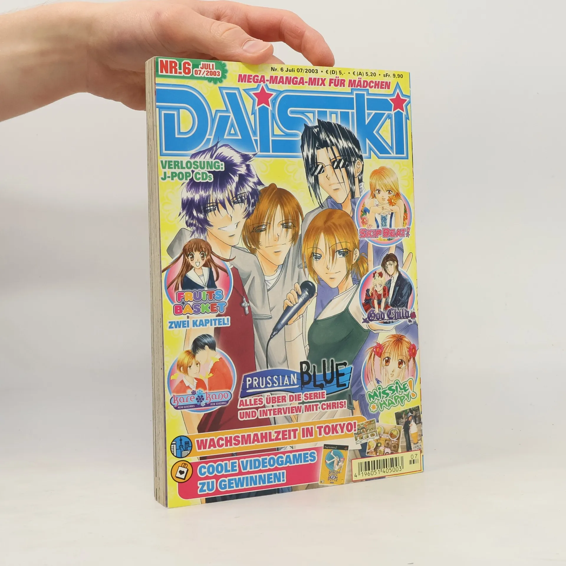 Die neue DAISUKI präsentiert ein großes "Close Up" über die Lieblings-Band und ein Interview mit Christina-chan als Abschied von "Prussian Blue". Neue Kapitel von "Kare Kano", "Fruits Basket", "Skip Beat" und "God Child" sind ebenfalls enthalten, sowie ein doppeltes Kapitel von "Fruits Basket" und Berichte über merkwürdiges Essen in "Tokyo Tales".