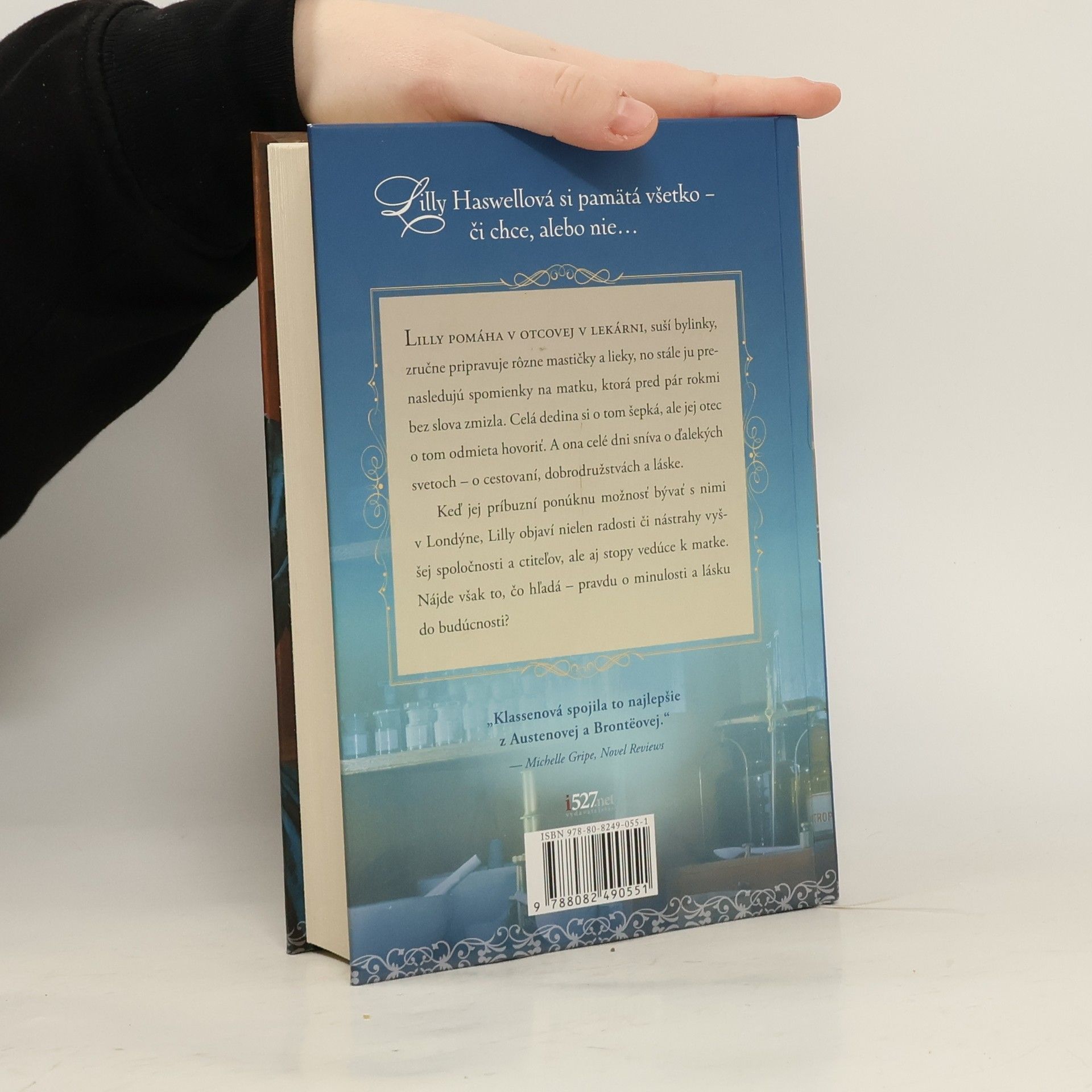 Prvotina Julie Klassen.Nájde Lilly to, čo hľadá?Pravdu o minulosti a lásku v budúcnosti?Lilly Haswellová si pamätá všetko – či chce, alebo nie…Lilly pomáha v otcovej v lekárni, suší bylinky, zručne pripravuje rôzne mastičky a lieky, no stále ju prenasledujú spomienky na matku, ktorá pred pár rokmi bez slova zmizla. Celá dedina si o tom šepká, ale jej otec o tom odmieta hovoriť. A ona celé dni sníva o ďalekých svetoch – o cestovaní, dobrodružstvách a láske. Keď jej príbuzní ponúknu možnosť bývať s nimi v Londýne, Lilly objaví nielen radosti či nástrahy vyššej spoločnosti a ctiteľov, ale aj stopy vedúce k matke. Nájde však to, čo hľadá – pravdu o minulosti a lásku do budúcnosti?