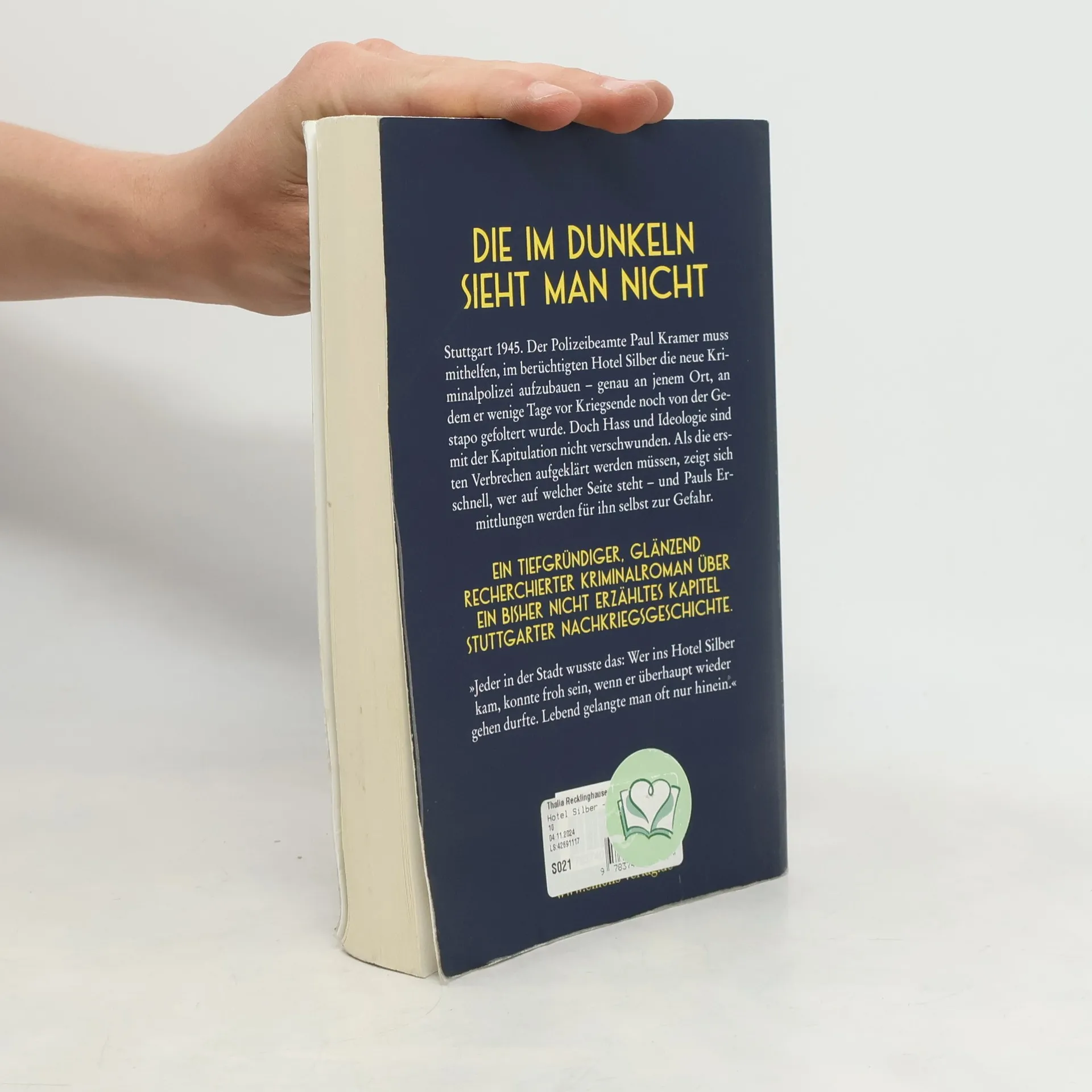 Ein vielschichtiger Kriminalroman über ein unerzähltes Kapitel der Nachkriegsgeschichte. Im Juli 1945 in Stuttgart muss Polizeibeamter Paul Kramer im Hotel Silber die neue Kriminalpolizei aufbauen. Alte Feindschaften und Ideologien sind noch präsent, und seine Ermittlungen bringen ihn in große Gefahr.