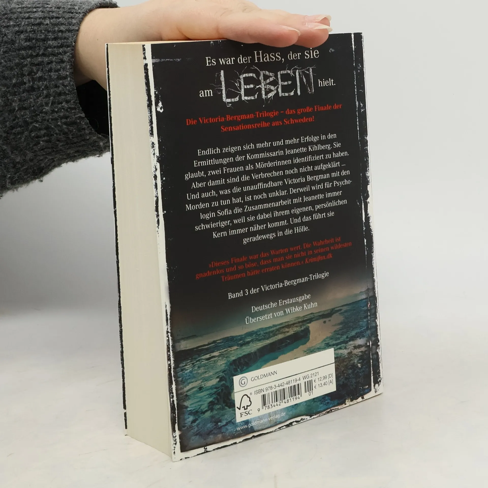 Während Jeanette Kihlbergs Ermittlungen endlich Erfolge zeigen, geht Sofia durch die Hölle. Ist Victoria Bergman schuldig? Endlich zeigen sich mehr und mehr Erfolge in den Ermittlungen der Kommissarin Jeanette Kihlberg. Sie glaubt, zwei Frauen als Mörderinnen identifiziert zu haben. Aber damit sind die Verbrechen noch nicht aufgeklärt ... Und auch, was die unauffindbare Victoria Bergman mit den Morden zu tun hat, ist noch unklar. Derweil wird für Psychologin Sofia die Zusammenarbeit mit Jeanette immer schwieriger, weil sie dabei ihrem eigenen, persönlichen Kern immer näher kommt. Und das führt sie geradewegs in die Hölle. „Krähenmädchen“ (Band 1 der Victoria-Bergman-Trilogie) ist im Juli 2014 erschienen. „Narbenkind“ (Band 2 der Victoria-Bergman-Trilogie) ist im September 2014 erschienen. „Schattenschrei“ (Band 3 der Victoria-Bergman-Trilogie) ist im November 2014 erschienen.