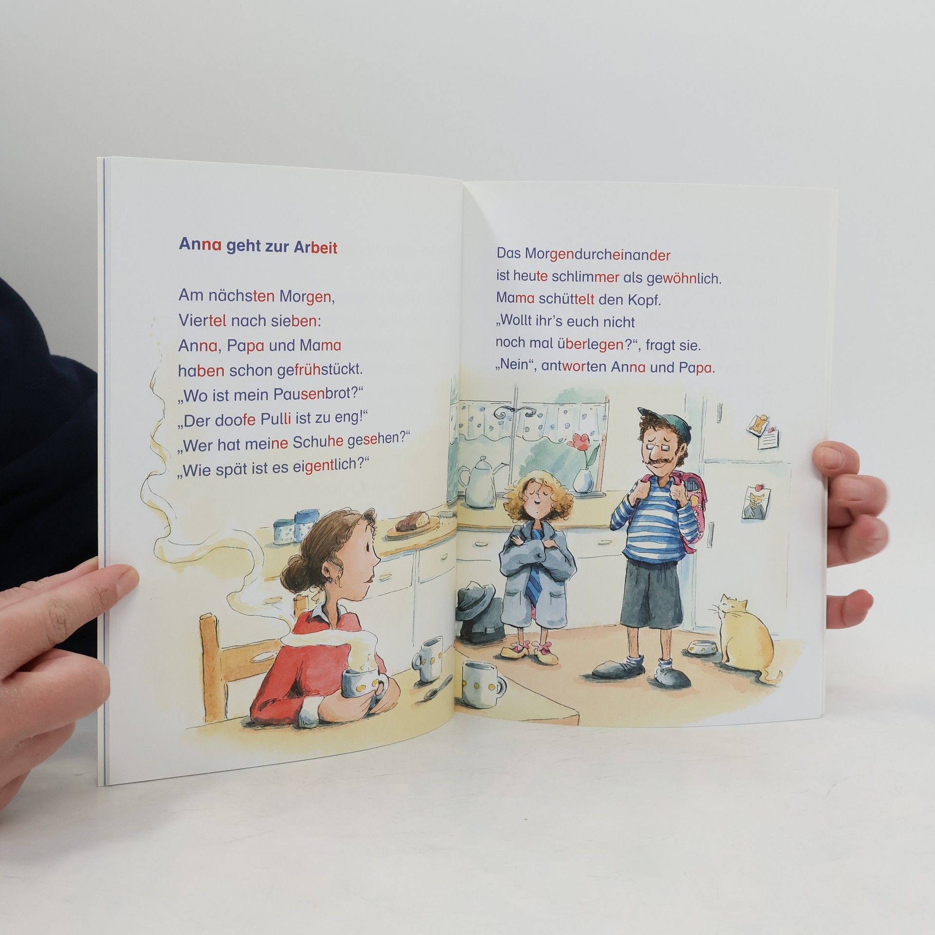 Anna und Papa tauschen für einen Tag die Rollen: Anna geht ins Büro, während Papa zur Schule geht.