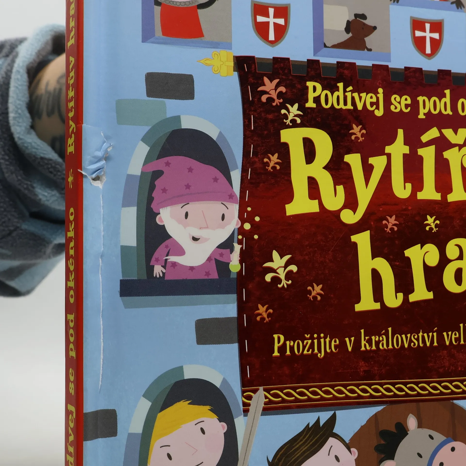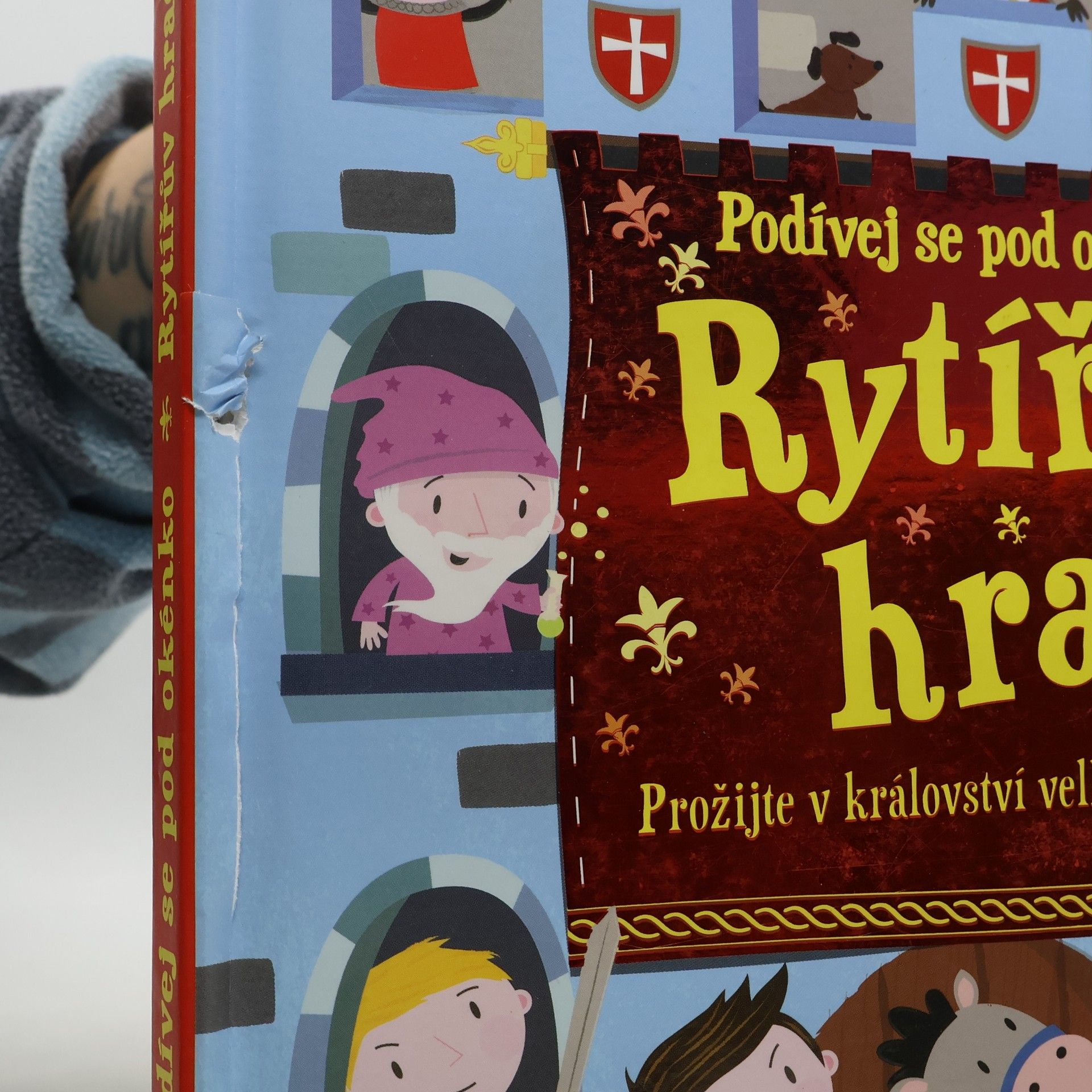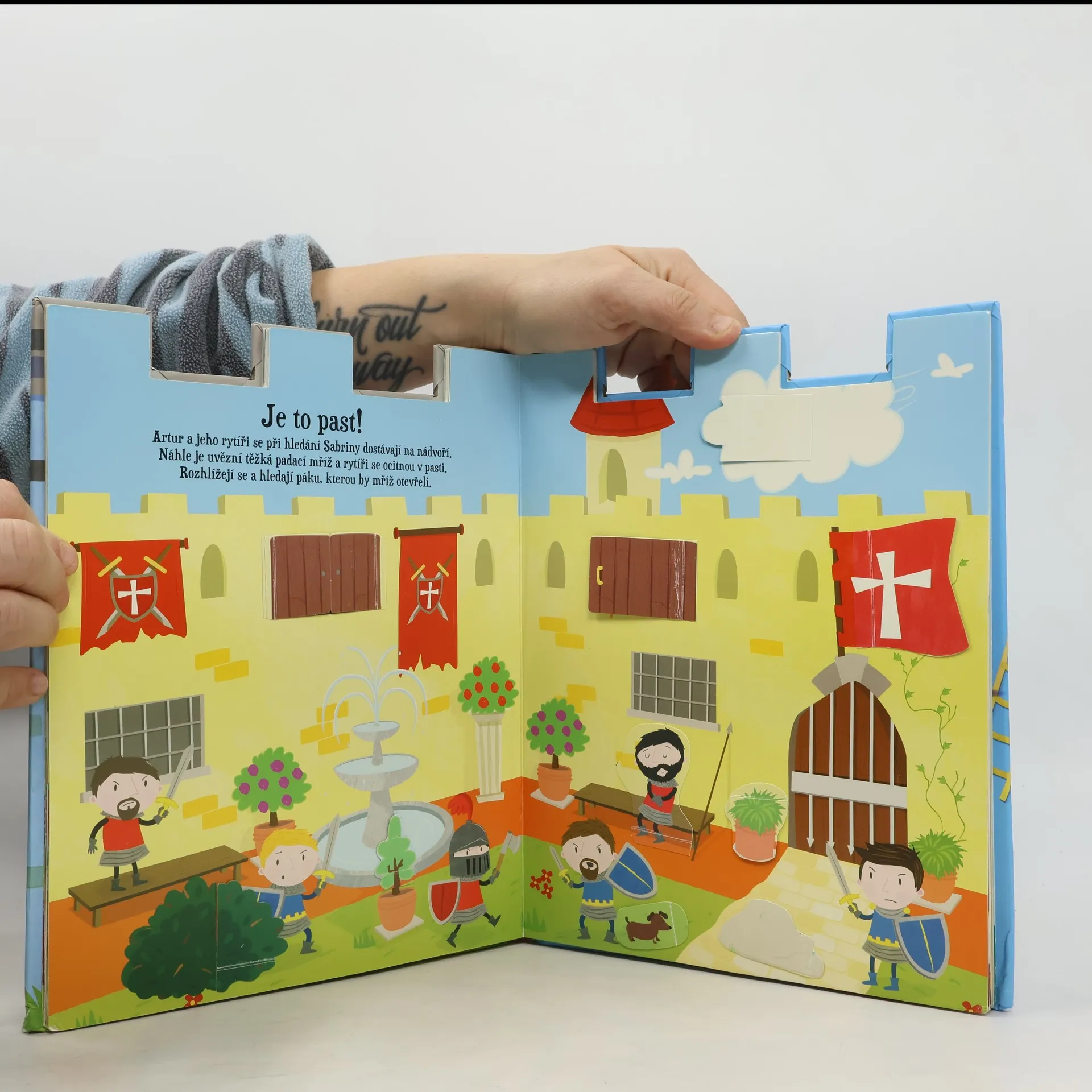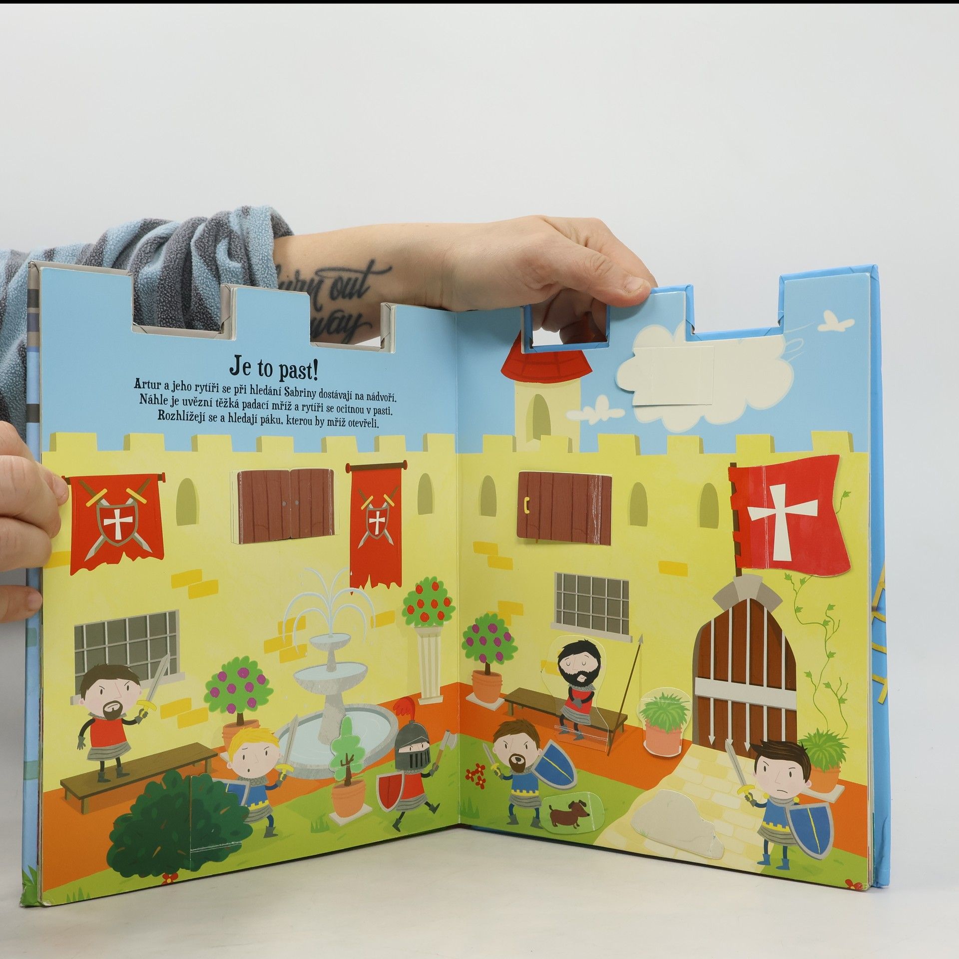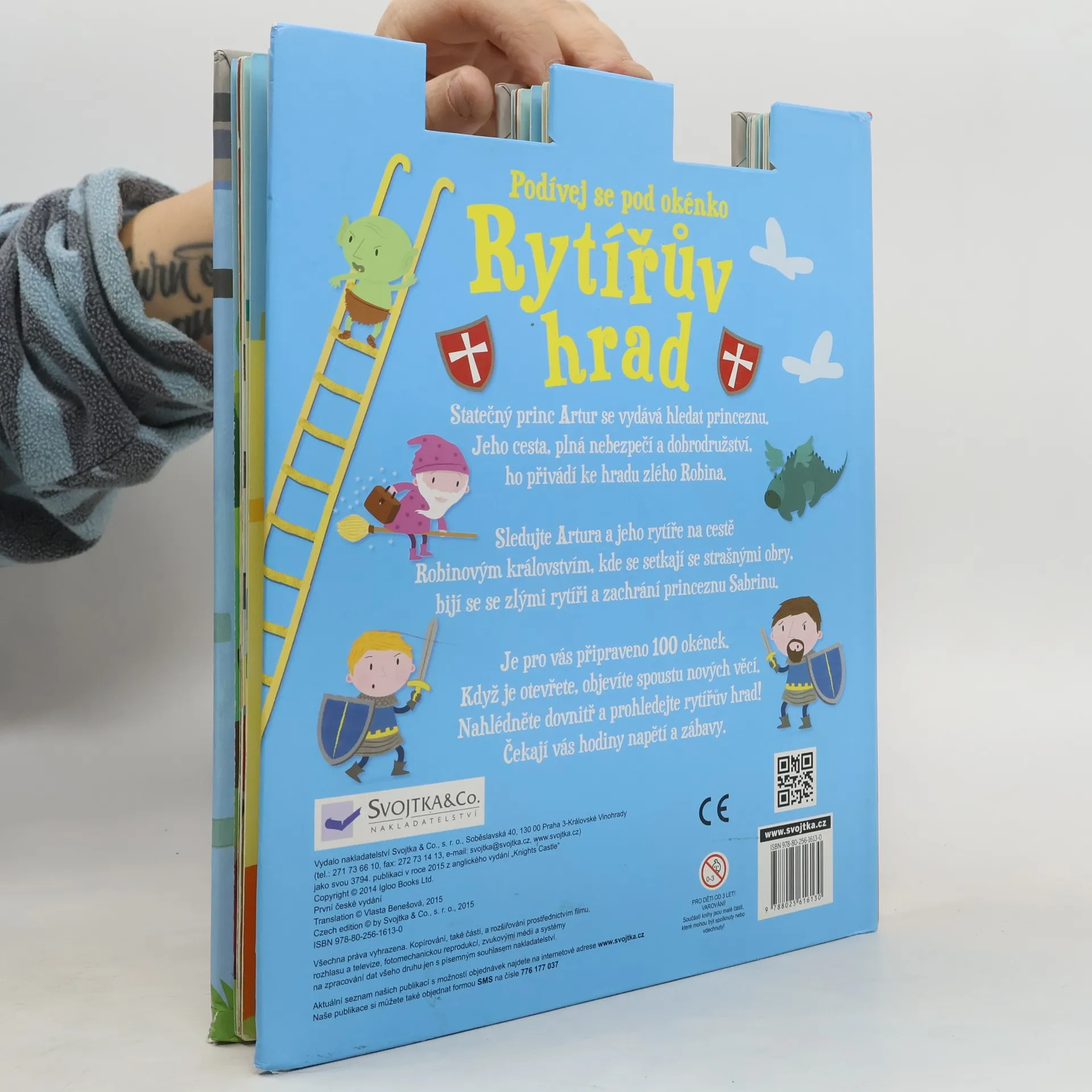 Statečný princ Artur přichází do království zlého Robina, aby zachránil princeznu Sabrinu, kterou zlý Robin vězní na svém hradě. Podaří se Arturovi a jeho přátelům objevit všechny nástrahy a princeznu najít? Najdou vše potřebné – klíče, zbraně, mapy? Pomoz Robinovi a jeho rytířům a za pomoci 100 odklápěcích okének v této knížce celý hrad prohledej. Pusť se do toho – otevři okénka a hledej! Při hledání najdeš vše potřebné, leccos se dozvíš a prožiješ překvapivá dobrodružství. A rozhodně se nebudeš nudit!