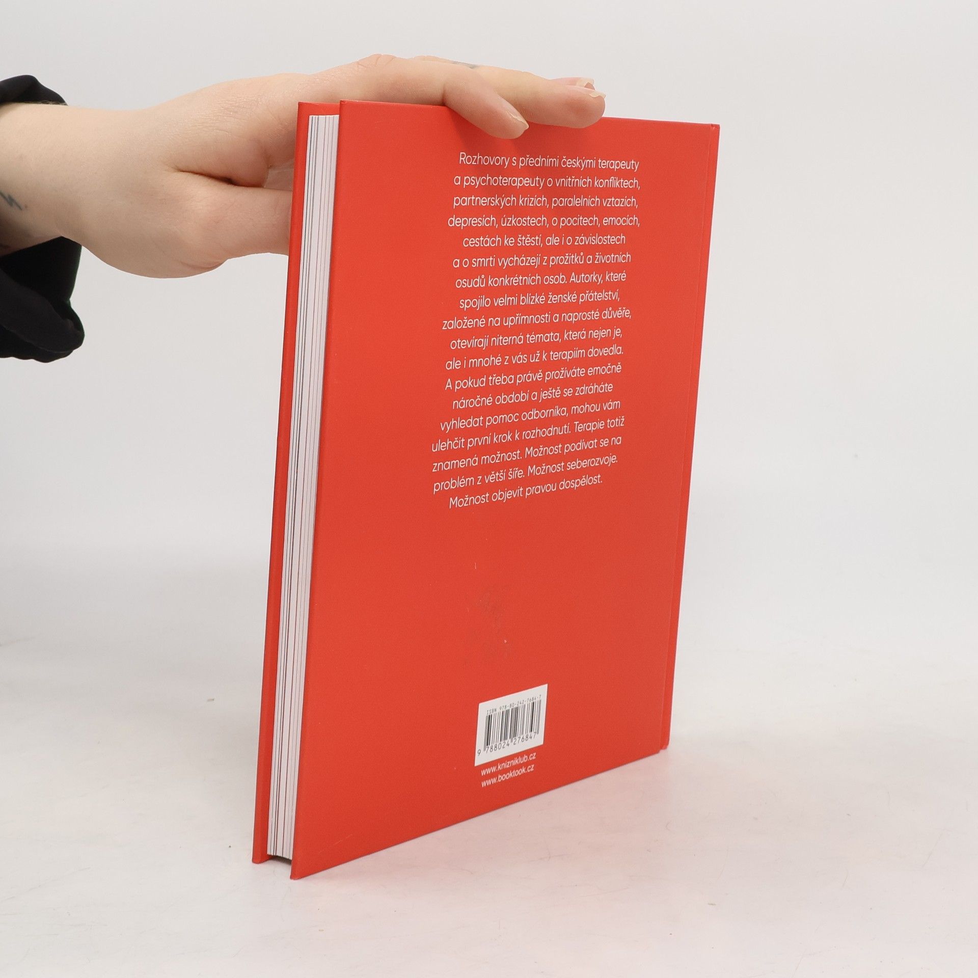 Rozhovory s předními českými terapeuty a psychoterapeuty o vnitřních konfliktech, partnerských krizích, paralelních vztazích, depresích, úzkostech, o pocitech, emocích, cestách ke štěstí, ale i o závislostech a o smrti vycházejí z prožitků a životních osudů konkrétních osob. Před čtenářem se tak rozehrává začátek skutečné terapie. Barbara Nesvadbová, Pavlína Saudková a Jana Brázdilová se ptají psychoterapeutek Jitky Vodňanské a Nory Vláškové, psycholožky Jany Woleské, párových terapeutů Pavla Rataje a Jana Vojtka, adiktologa Michala Miovského a psychoterapeutů Jana Kulhánka a Michala Mynáře.