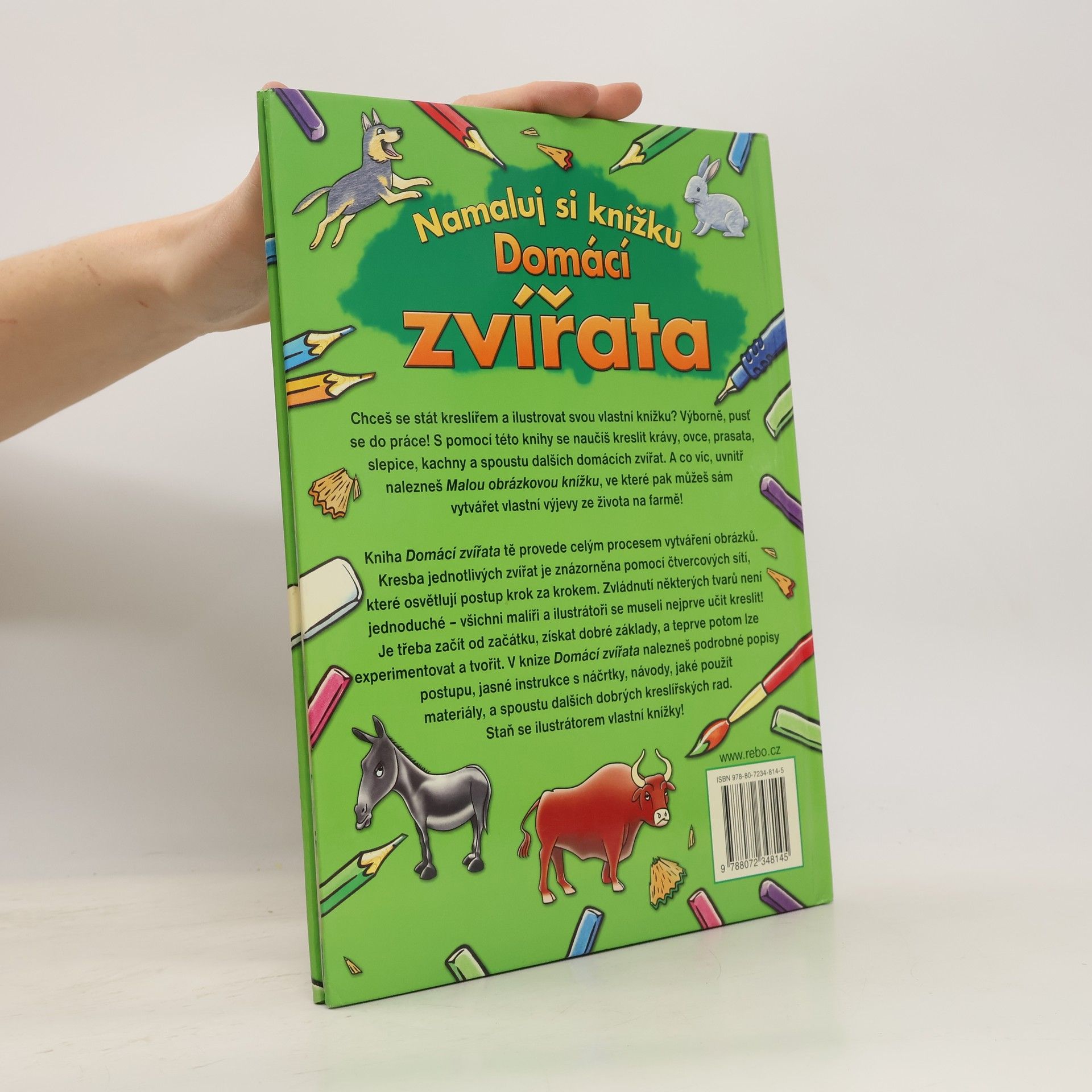 Chceš se stát kreslířem a ilustrovat svou vlastní knížku? Výborně, pusť se do práce! S pomocí této knihy se naučíš kreslit krávy, ovce, prasata, slepice, kachny a spoustu dalších domácích zvířat. A co víc, uvnitř nalezneš Malou obrázkovou knížku, ve které pak můžeš sám vytvářet vlastní výjevy ze života na farmě!