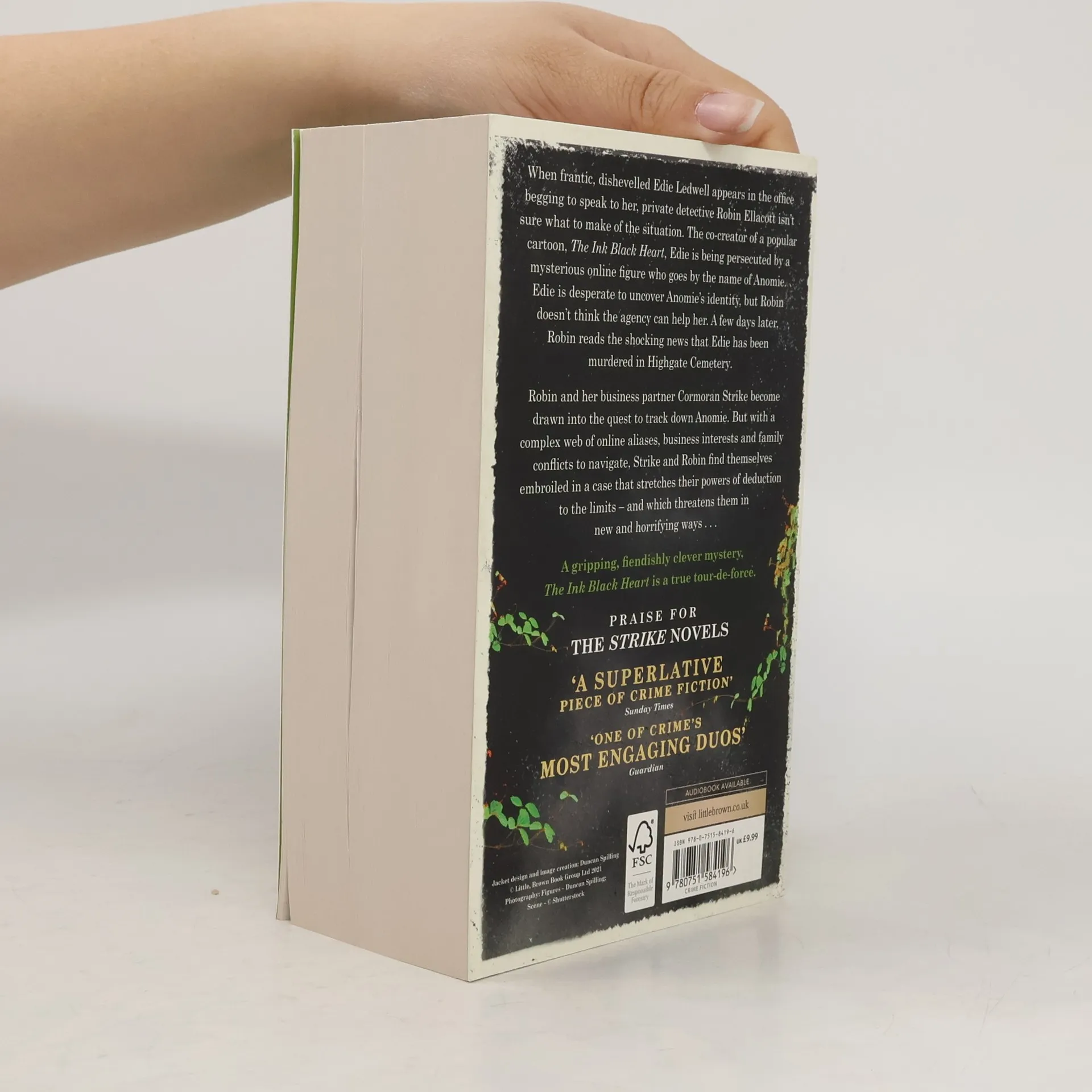 When frantic, dishevelled Edie Ledwell appears in the office begging to speak to her, private detective Robin Ellacott doesn't know quite what to make of the situation. The co-creator of a popular cartoon, The Ink Black Heart, Edie is being persecuted by a mysterious online figure who goes by the pseudonym of Anomie. Edie is desperate to uncover Anomie's true identity. Robin decides that the agency can't help with this - and thinks nothing more of it until a few days later, when she reads the shocking news that Edie has been tasered and then murdered in Highgate Cemetery, the location of The Ink Black Heart. Robin and her business partner Cormoran Strike become drawn into the quest to uncover Anomie's true identity. But with a complex web of online aliases, business interests and family conflicts to navigate, Strike and Robin find themselves embroiled in a case that stretches their powers of deduction to the limits - and which threatens them in new and horrifying ways . . . A gripping, fiendishly clever mystery, The Ink Black Heart is a true tour-de-force.