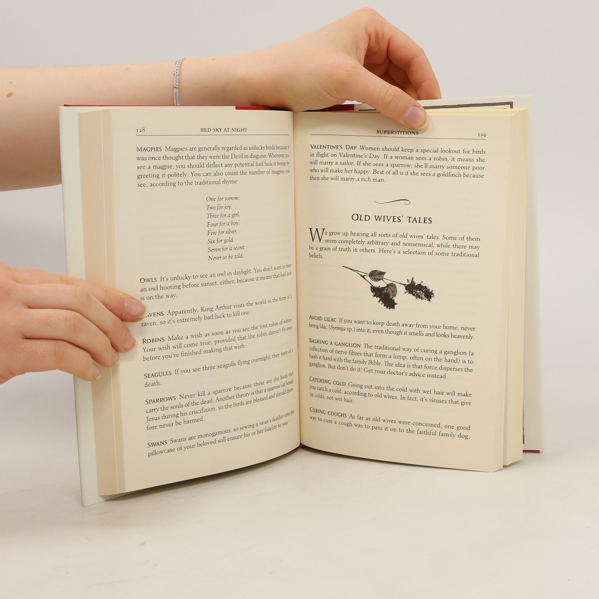 "Red Sky at Night" offers a guide to various activities, including identifying five types of owls, gardening by moon phases, home remedies for colds, and brewing ale. It combines practical instructions with ancient customs and folklore.