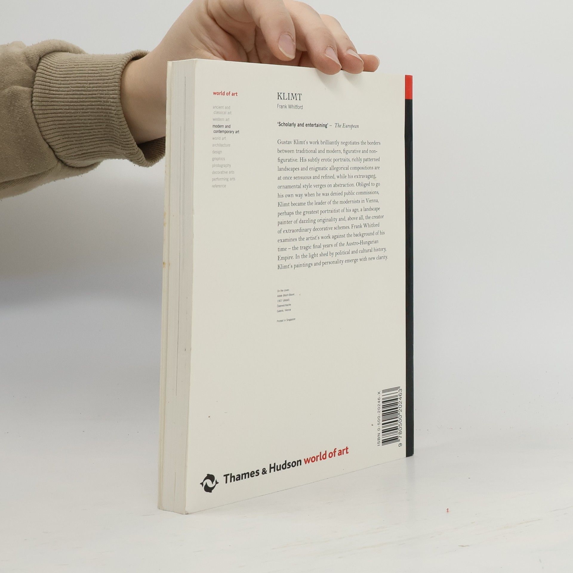 Gustav Klimt's work brilliantly negotiates the borders between the traditional and the modern, the figurative and non-figurative. His subtly erotic portraits, richly patterned landscapes and enigmatic allegorical compositions are at once sensuous and refined, while his extravagant, ornamental style verges on abstraction. Obliged to go his own way when he was denied public commissions, Klimt became the leader of the modernists in Vienna, perhaps the greatest portraitist of his age, a landscape painter of dazzling originality and, above all, the creator of extraordinary decorative schemes. Frank Whitford examines the artist's work against the background of his time - the tragic final years of the Austro-Hungarian Empire. In the light shed by political and cultural history, Klimt's paintings and personality emerge with new clarity.