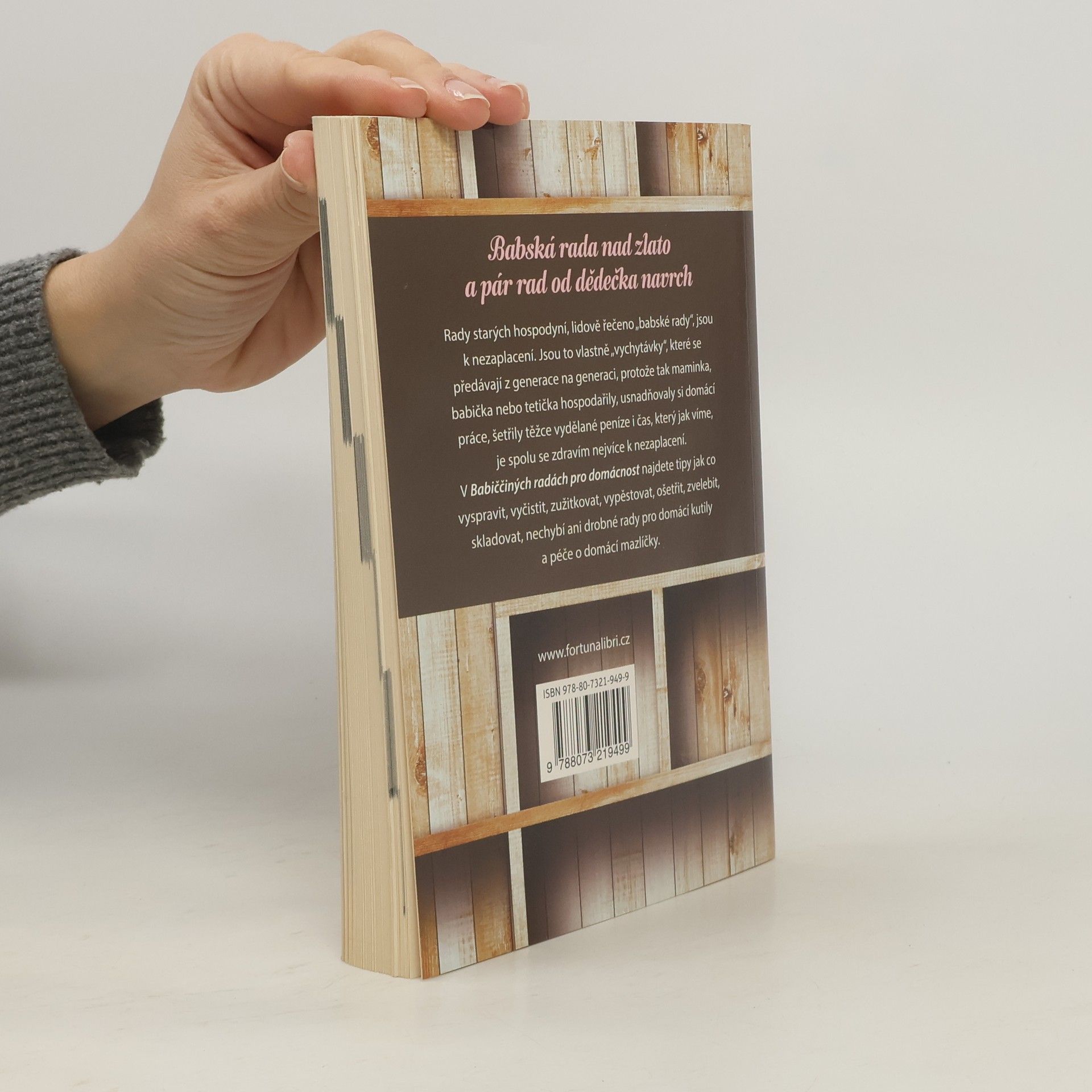 Rady starých hospodyní, lidově řečeno "babské rady", jsou k nezaplacení. Jsou to vlastně "vychytávky", které se předávají z generace na generaci, protože tak maminka, babička nebo tetička hospodařily, usnadňovaly si domácí práce, šetřily těžce vydělané peníze i čas, který jak víme, je spolu se zdravím nejvíce k nezplacení. V Babiččiných radách pro domácnost najdete tipy jak co vyspravit, vyčistit, zužitkovat, vypěstovat, ošetřit, zvelebit, skladovat, nechybí ani drobné rady pro domácí kutily a péče o domácí mazlíčky.