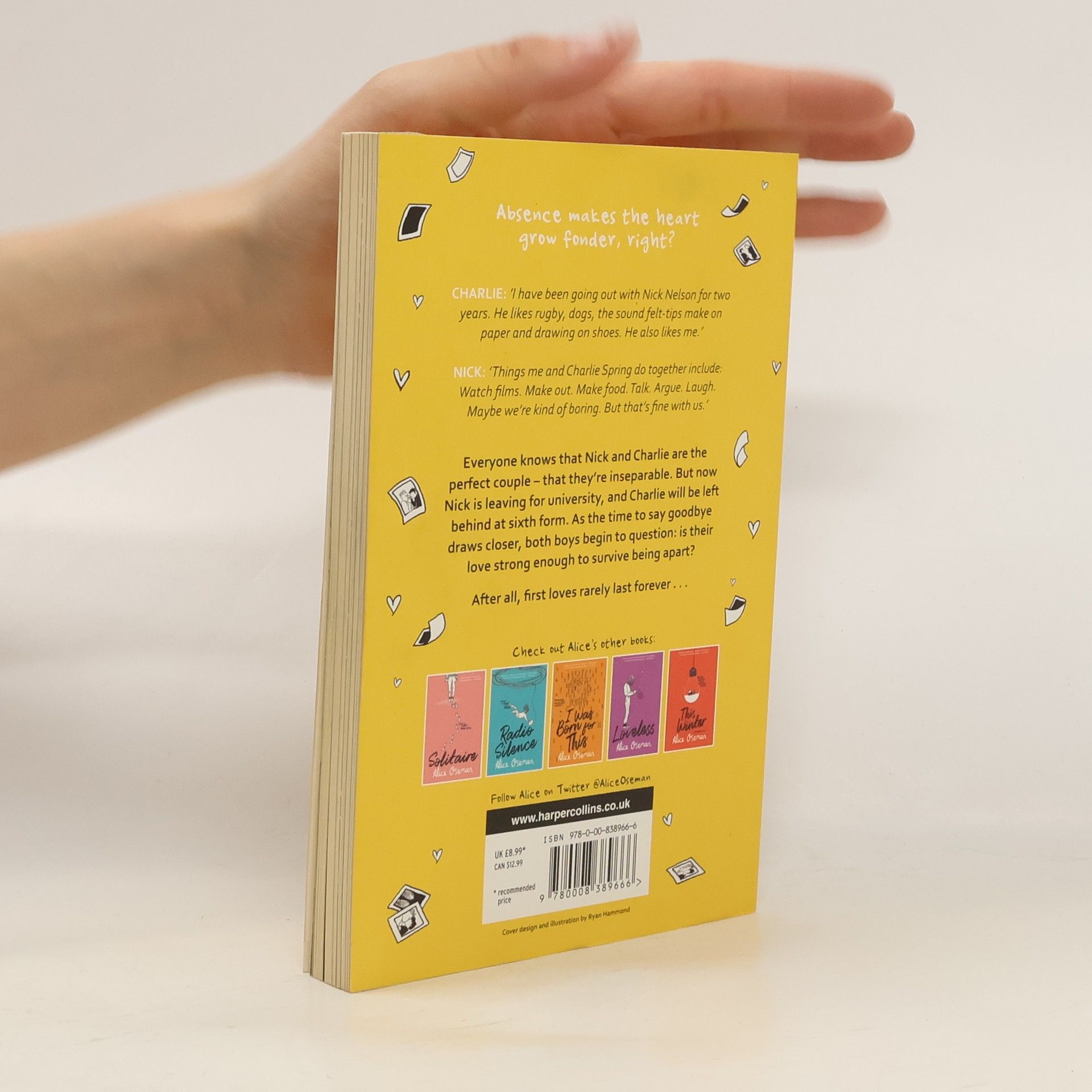 A SUNDAY TIMES TOP 5 CHILDREN'S BESTSELLER A short novella based on the beloved characters from Alice Oseman's acclaimed debut novel Solitaire and graphic novel series Heartstopper - now a major Netflix series. From the author of the 2021 YA Book Prize winning Loveless. Absence makes the heart grow fonder, right? CHARLIE: "I have been going out with Nick Nelson for two years. He likes rugby, Formula 1, dogs, the Marvel universe, the sound felt-tips make on paper, rain and drawing on shoes. He also likes me." NICK: "Things me and Charlie Spring do together include: Watch films. Sit in the same room on different laptops. Text each other from different rooms. Make out. Make food. Make drinks. Get drunk. Talk. Argue. Laugh. Maybe we're kind of boring. But that's fine with us." Everyone knows that Nick and Charlie are the perfect couple - that they're inseparable. But now Nick is leaving for university, and Charlie will be left behind at Sixth Form. Everyone's asking if they're staying together, which is a stupid question - they're 'Nick and Charlie' for God's sake! But as the time to say goodbye gets inevitably closer, both Nick and Charlie question whether their love is strong enough to survive being apart. Or are they delaying the inevitable? Because everyone knows that first loves rarely last forever...