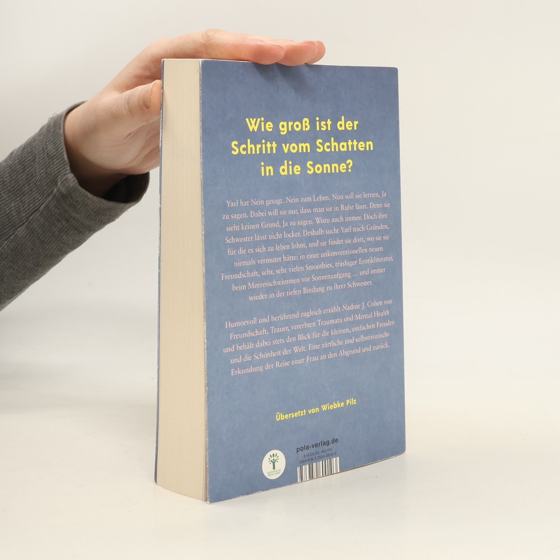 Yael hat Nein zum Leben gesagt und möchte in Ruhe gelassen werden. Doch ihre Schwester zwingt sie, nach Gründen für das Leben zu suchen. Nadine J. Cohen erzählt von Yaels unerwarteten Entdeckungen in einer unkonventionellen Freundschaft, beim Meeresschwimmen und in der Bindung zu ihrer Schwester. Eine zärtliche und selbstironische Reise.