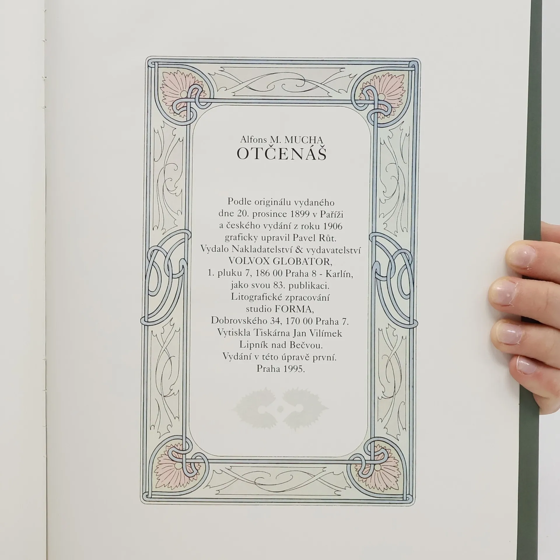 Muchovo výtvarně textové zpracování a rozvedení Otčenáše, podané zde ve francouzské i české verzi.