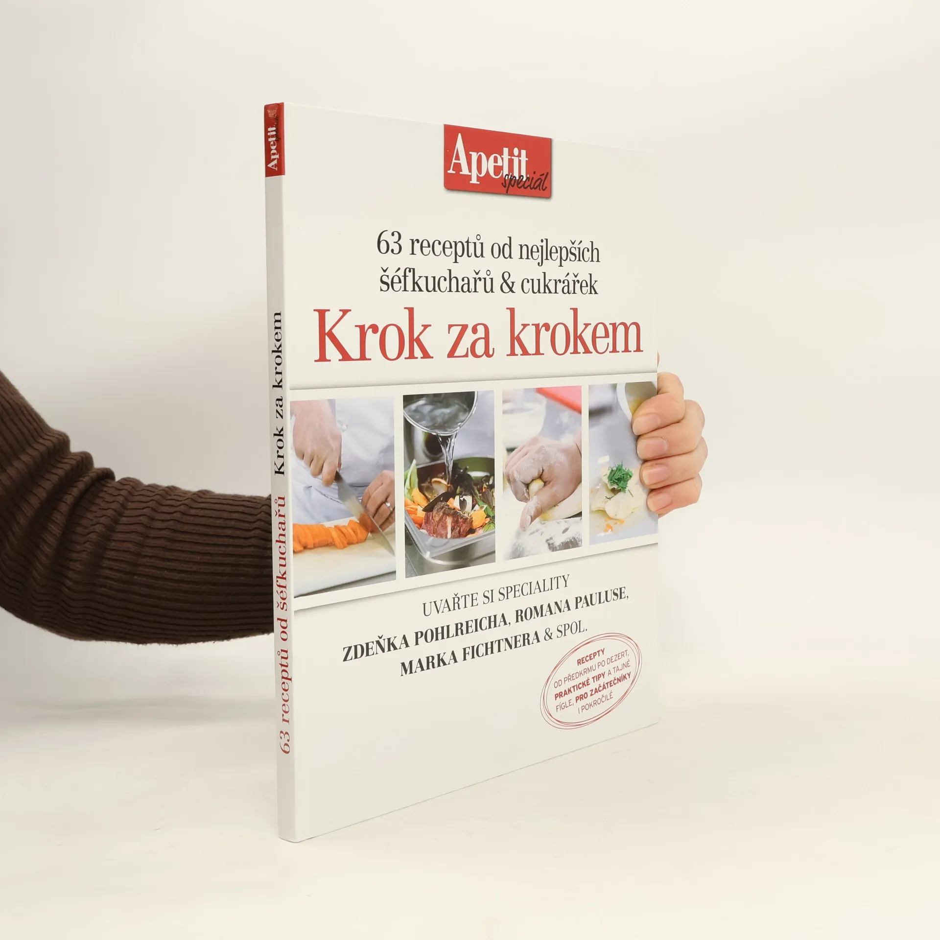 Ty nejzajímavější recepty, které pro Apetit připravili nejlepší šéfkuchaři, krok za krokem. Uvnitř najdete: - neotřelé recepty od polévek po dezerty - do detailů popsané návody - postupové fotky - tipy a fígle odkoukané od profíků Kniha je rozdělena do kapitol: polévky, malá jídla, hlavní chod, z cizích krajů a dezerty. Obsahuje recepty na klasiku, jako je třeba španělský ptáček nebo koprovka, ale i exotiku (polévku pho, gruzínské khinkali atd.). S podrobným návodem od šéfkuchařů si troufnete i na takové majstrštyky, jako je kuřecí roláda, italská porchetta nebo domácí ravioly.