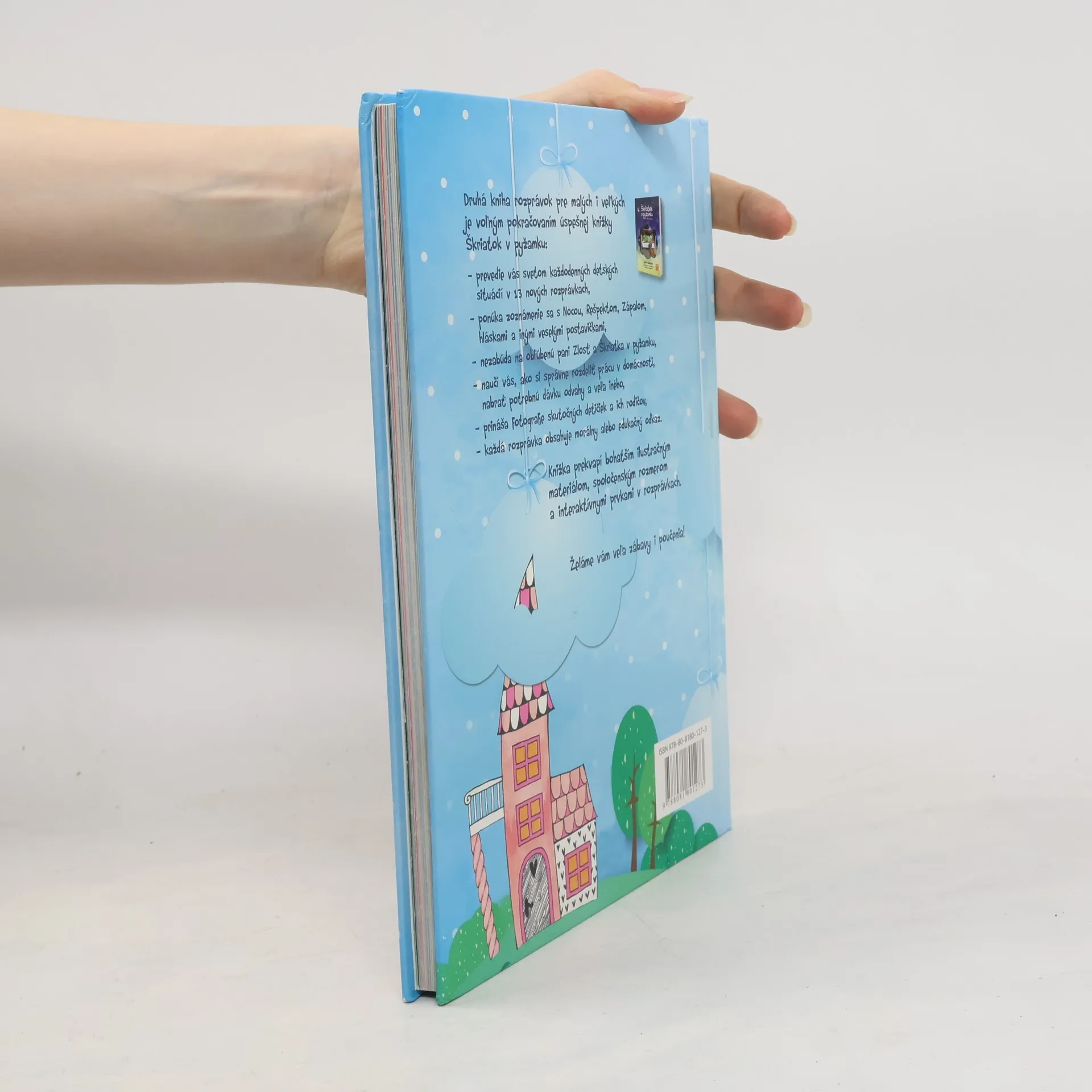 Pani Zlosť sa vracia!Druhá knižka rozprávok pre malých aj veľkých je voľným pokračovaním úspešnej knižky Škriatok v pyžamku. Prevedie vás svetom každodenných detských situácií v 13 nových rozprávkach. Hlavní hrdinovia sa popasujú so zápalom v ušku, s trénovaním výslovnosti hlásky R, s obhrýzaním nechtíkov, s nechuťou podeliť sa o hojdačku s inými deťmi, s nočným vybiehaním z postieľky a s ďalšími detskými trampotami.Knižka je ideálnym návodom pre rodičov na zvládnutie výchovných problémov s vtipom a ľahkosťou. Ponúka zoznámenie sa s Nocou, Rešpektom, bacilmi Helom a Monelou a inými veselými postavičkami. Nezabúda ani na obľúbenú pani Zlosť a Škriatka v pyžamku. Knižka prekvapí bohatším ilustračným materiálom, spoločenským rozmerom a interaktívnymi prvkami v rozprávkach.Knižka je vhodná pre čitateľov od 3 rokov.