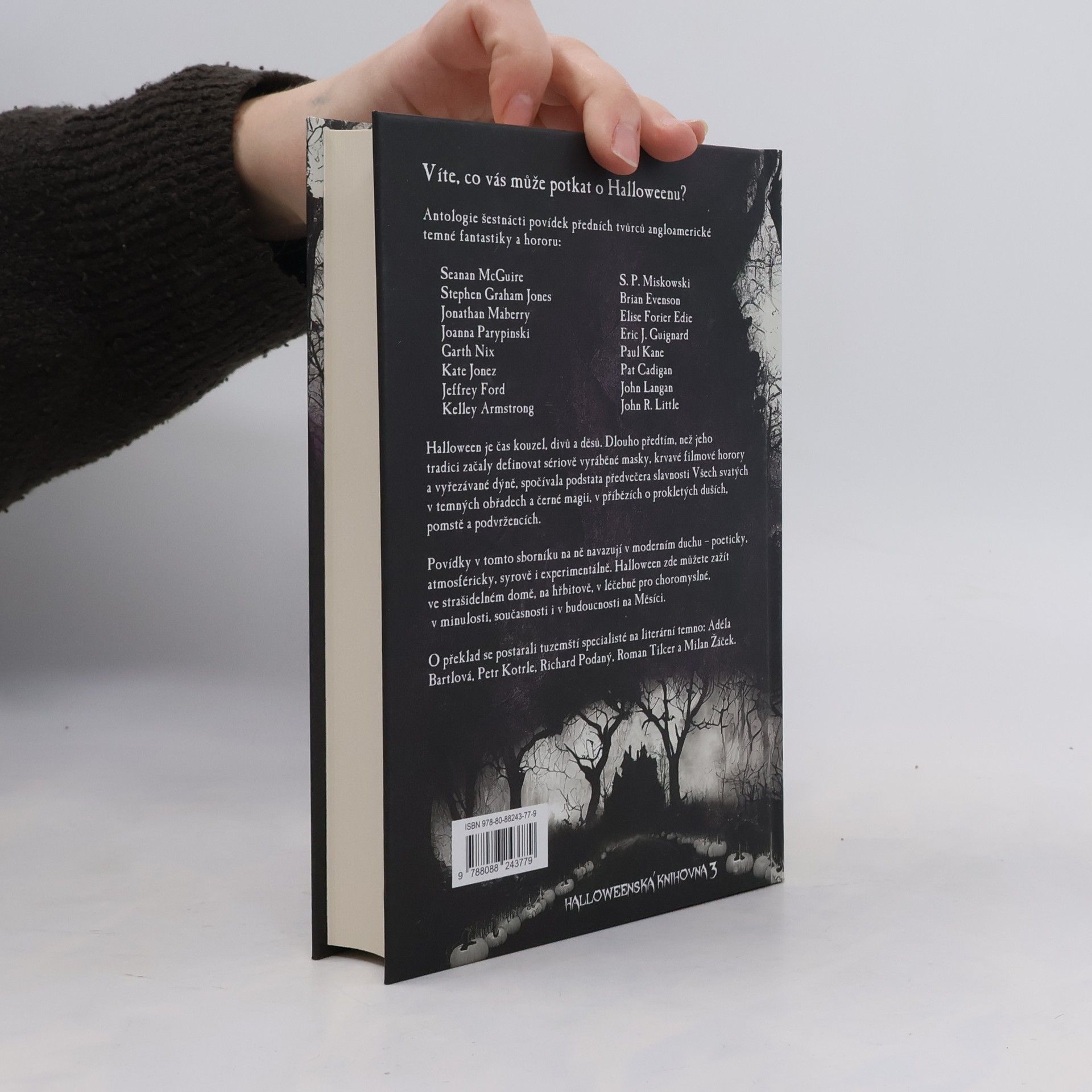 Antologie šestnácti povídek předních tvůrců angloamerické temné fantastiky a hororu.Halloween je čas kouzel, divů a děsů. Dlouho předtím, než jeho tradici začaly definovat sériově vyráběné masky, krvavé filmové horory a vyřezávané dýně, spočívala podstata předvečera slavnosti Všech svatých v temných obřadech a černé magii, v příbězích o prokletých duších, pomstě a podvržencích.Povídky v tomto sborníku na ně navazují v moderním duchu – poeticky, atmosféricky, syrově i experimentálně. Halloween zde můžete zažít ve strašidelném domě, na hřbitově, v léčebně pro choromyslné, v minulosti, současnosti i v budoucnosti na Měsíci. O překlad se postarali tuzemští specialisté na literární temno: Adéla Bartlová, Petr Kotrle, Richard Podaný, Roman Tilcer a Milan Žáček.