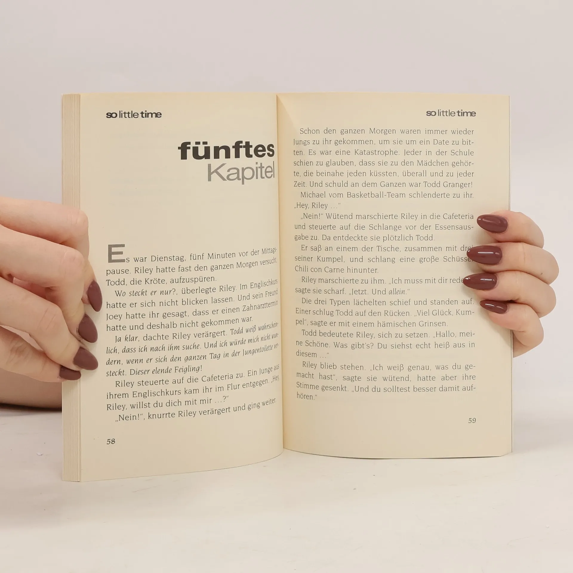 In "Mary-KateandAshley – So little time Band 10" kämpft Chloe mit den seltsamen Tipps eines Internet-Liebesratgebers, während sie mit Lennon glücklich ist. Ihre Schwester Riley hat ebenfalls Probleme mit dem Angeber Todd, der miese Lügen über sie verbreitet, und plant Rache.