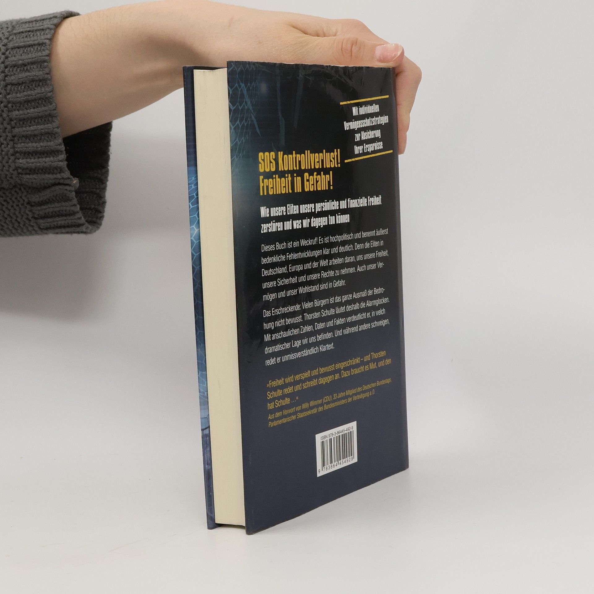 SOS Kontrollverlust! Freiheit in Gefahr! Dieses Buch ist ein Weckruf und thematisiert besorgniserregende Entwicklungen, die unsere persönliche und finanzielle Freiheit bedrohen. Die Eliten in Deutschland, Europa und der Welt arbeiten daran, uns unsere Rechte und unser Vermögen zu entziehen. Viele Bürger sind sich der gesamten Bedrohung nicht bewusst, weshalb Thorsten Schulte die Alarmglocken läutet. Mit klaren Zahlen und Fakten verdeutlicht er die dramatische Lage, während andere schweigen. Er zeigt auf, wie Bundeskanzlerin Angela Merkel gegen Recht und Gesetz verstößt und Brüsseler Technokraten zunehmend Macht an sich reißen, was die Entmündigung der Bürger zur Folge hat. Wenn die Herrschaft des Rechts endet, wird es keine guten Zeiten geben. Es liegt an uns, unsere Freiheit und eine lebenswerte Zukunft zu verteidigen. Wir dürfen unsere Privatsphäre, Meinungsvielfalt, Rechtsstaatlichkeit und unser Bargeld nicht aufgeben. Denn einmal verloren, werden wir unsere Freiheit nie zurückbekommen. Angesichts der riskanten Politik der EZB, die in einem Kollaps der Finanzsysteme enden könnte, bietet das Buch zahlreiche umsetzbare Empfehlungen, um Ihr Vermögen zu schützen. „Lassen Sie uns alle eine Leuchtfackel für unsere Freiheit werden. Wir dürfen nicht kapitulieren!“ – Thorsten Schulte.