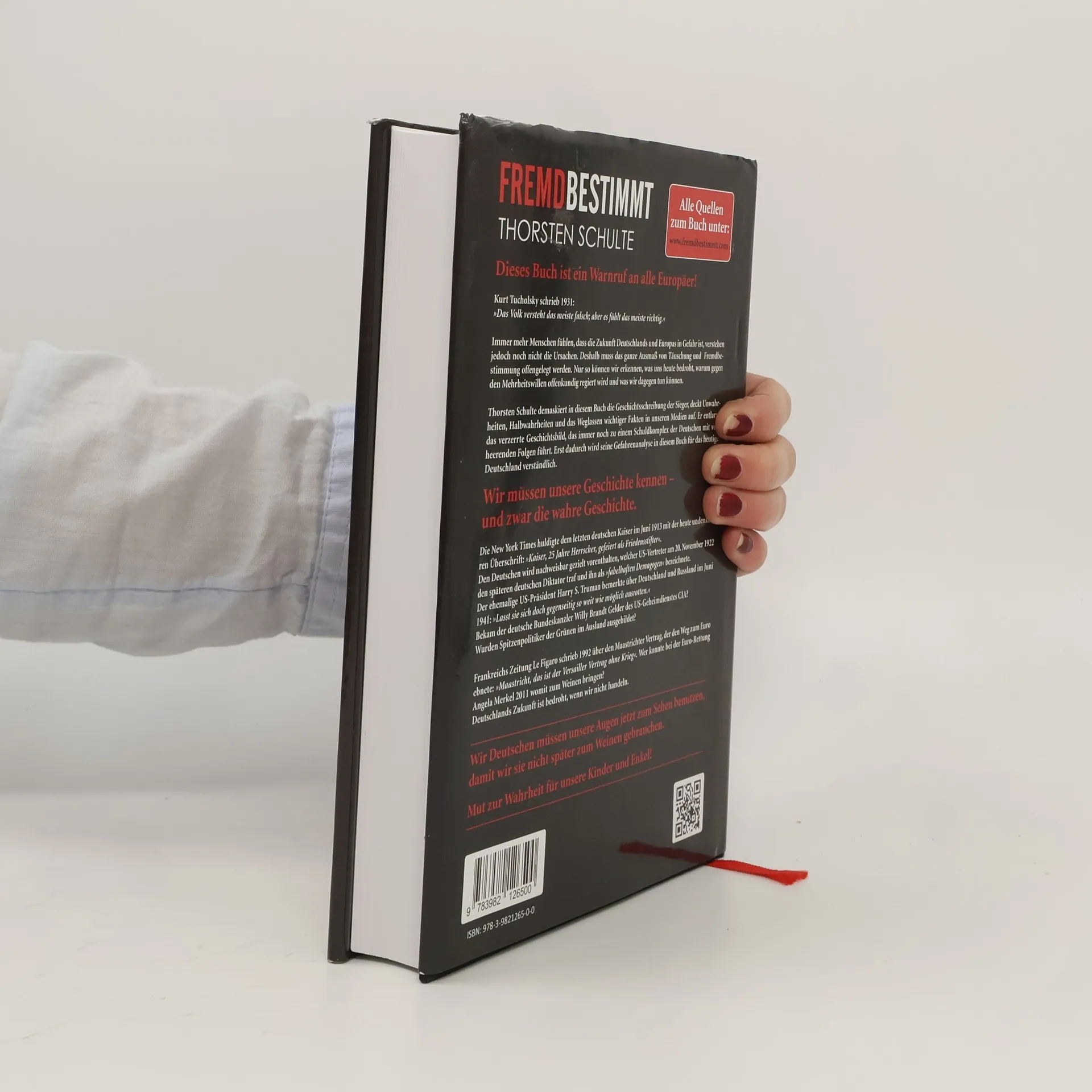 Seit dem 11.2.2022 wird die 8. Auflage mit zusätzlichen Seiten, 888 statt 878 Fußnoten und einem 14-seitigen Personenregister ausgeliefert. Dieses Buch ist ein Warnruf an alle Europäer! Kurt Tucholsky schrieb 1931: »Das Volk versteht das meiste falsch; aber es fühlt das meiste richtig.« Immer mehr Menschen spüren, dass die Zukunft Deutschlands und Europas gefährdet ist, erkennen jedoch die Ursachen nicht. Daher muss das Ausmaß von Täuschung und Fremdbestimmung offengelegt werden, um die gegen den Mehrheitswillen agierenden Mächte zu verstehen und Handlungsmöglichkeiten aufzuzeigen. Der Autor demaskiert die Geschichtsschreibung der Sieger und deckt Unwahrheiten sowie Halbwahrheiten in unseren Medien auf. Er entlarvt das verzerrte Geschichtsbild, das zu einem Schuldkomplex der Deutschen führt, und macht seine Gefahrenanalyse für das heutige Deutschland verständlich. Wir müssen die wahre Geschichte kennen. Die New York Times feierte 1913 den letzten deutschen Kaiser als Friedensstifter. Den Deutschen wird vorenthalten, welcher US-Vertreter 1922 den späteren Diktator als »fabelhaften Demagogen« bezeichnete. Harry S. Truman äußerte 1941 über Deutschland und Russland: »Lasst sie sich doch gegenseitig so weit wie möglich ausrotten.« Fragen zu CIA-Geldern für Willy Brandt und zur Ausbildung von Spitzenpolitikern der Grünen im Ausland bleiben offen. Deutschlands Zukunft ist bedroht, wenn wir nicht handeln. Wir müssen jetzt unsere Au