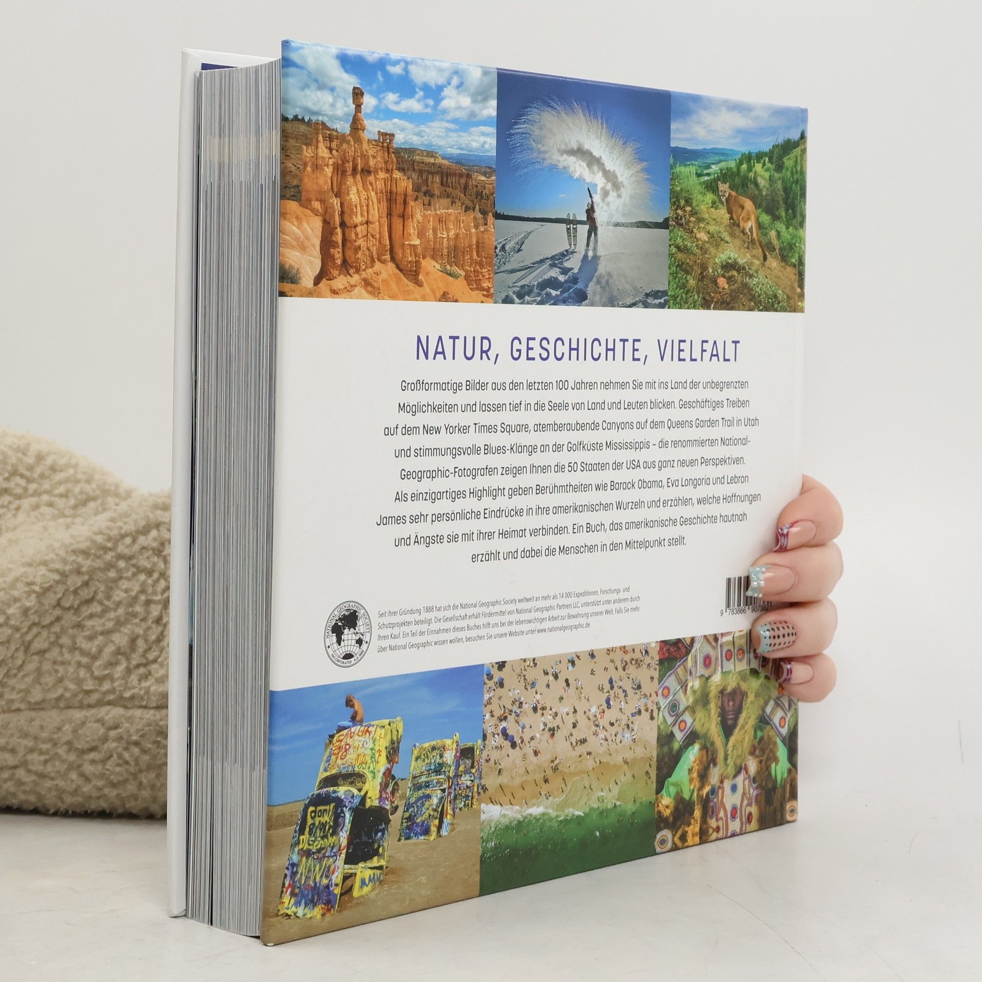 Großformatige Bilder der letzten 100 Jahre entführen in die USA und zeigen Land und Leute. National-Geographic-Fotografen präsentieren die 50 Staaten aus neuen Perspektiven. Berühmtheiten wie Barack Obama und Eva Longoria teilen persönliche Eindrücke ihrer Wurzeln und verbinden Geschichte mit menschlichen Geschichten.