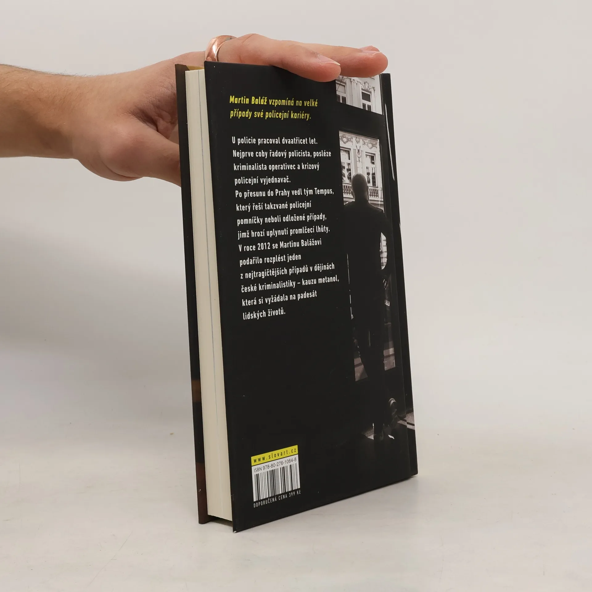 Martin Baláž pracoval u policie dvaatřicet let. Nejprve coby řadový policista, posléze kriminalista operativec a krizový policejní vyjednavač. V roce 2012 se mu podařilo rozplést kauzu metanol a odhalit, kdo jedovatý alkohol namíchal. Posléze se přesunul do Prahy, kde vedl tým Tempus. Ten řeší takzvané policejní pomníčky neboli případy, které byly odloženy nebo jsou těsně před uplynutím promlčecí lhůty. Martin Baláž v této knize vzpomíná na nejzajímavější případy své policejní kariéry: nejen na metanolovou aféru, ale třeba i na dopadení pachatele útoku na tenistku Petru Kvitovou.