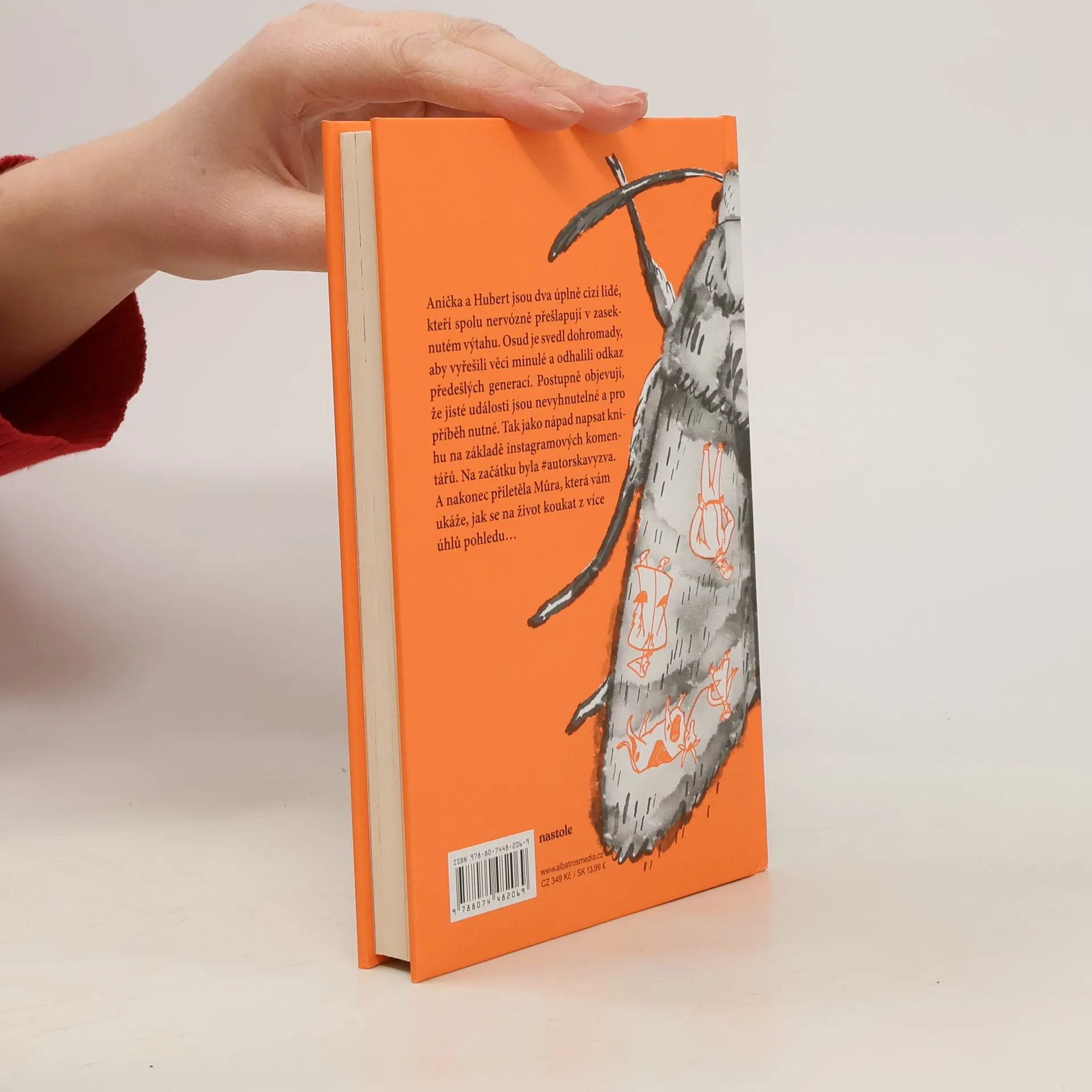 Zábavná novela, která vznikla jako autorská výzva na sociálních sítích oblíbené české herečky. Anička a Hubert jsou dva úplně cizí lidé. Teď ale nervózně přešlapují v zaseknutém výtahu a brzy mají zjistit, že jejich cesty se neprotnuly náhodou. Osud je svedl dohromady, aby vyřešili věci minulé a odhalili odkaz předešlých generací. Postupně objevují, že jisté události jsou nevyhnutelné, pro příběh nutné a žádoucí. Tak jako nápad napsat knihu na základě instagramových komentářů. Na začátku byla #autorskavyzva. A nakonec přiletěla Můra, která vám ukáže, jak se na život koukat z více úhlů pohledu... Nakladatelská anotace.