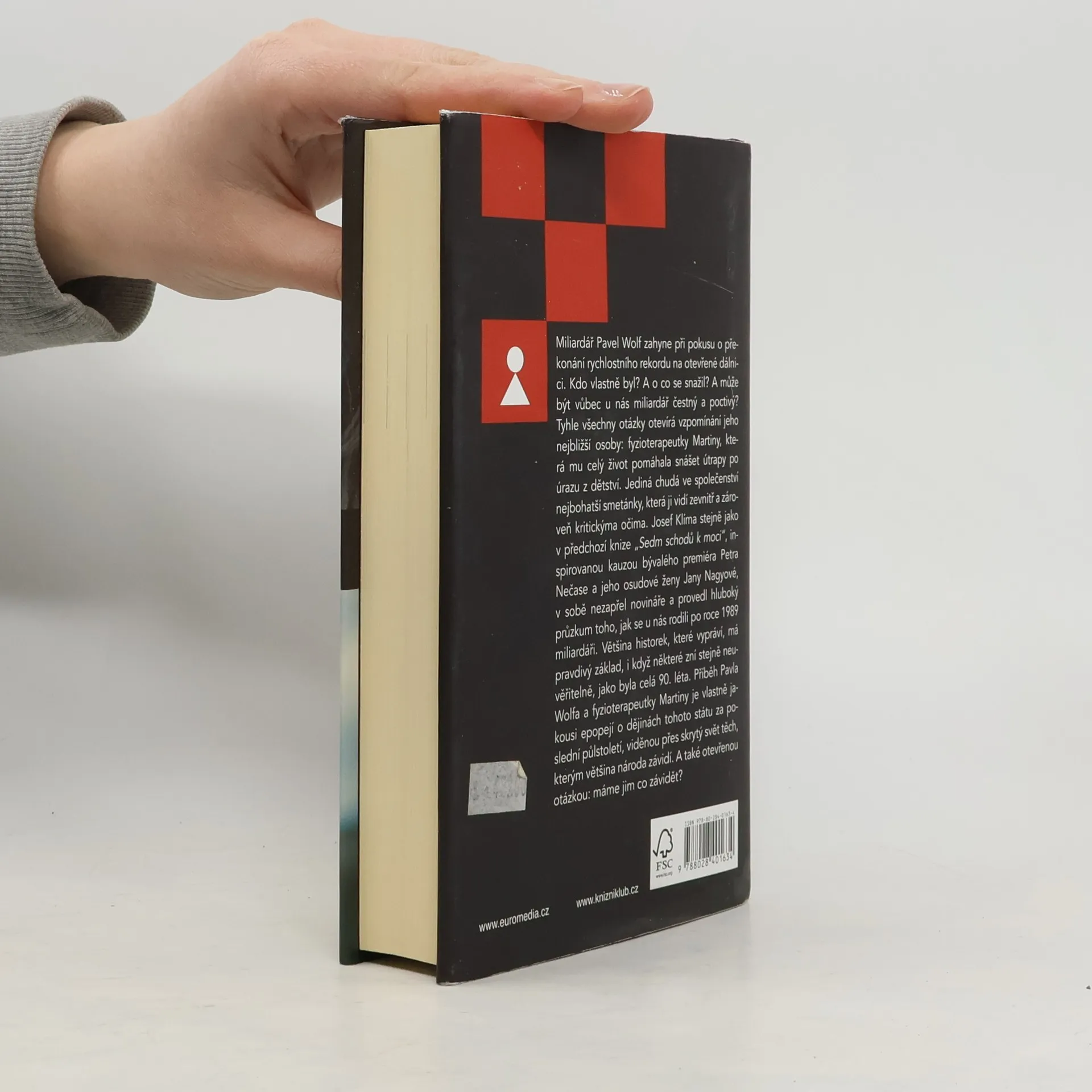 Miliardář Pavel Wolf zahyne při pokusu o překonání rychlostního rekordu na otevřené dálnici. Kdo vlastně byl? A o co se snažil? A může být vůbec u nás miliardář čestný a poctivý? Tyhle všechny otázky otevírá vzpomínání jeho nejbližší osoby: fyzioterapeutky Martiny, která mu celý život pomáhala snášet útrapy po úrazu z dětství. Jediná chudá ve společenství nejbohatší smetánky, která ji vidí zevnitř a zároveň kritickýma očima. Josef Klíma stejně jako v předchozí knize „Sedm schodů k moci“, inspirovanou kauzou bývalého premiéra Petra Nečase a jeho osudové ženy Jany Nagyové, v sobě nezapřel novináře a provedl hluboký průzkum toho, jak se u nás rodili po roce 1989 miliardáři. Většina historek, které vypráví, má pravdivý základ, i když některé zní stejně neuvěřitelně, jako byla celá 90. léta. Příběh Pavla Wolfa a fyzioterapeutky Martiny je vlastně jakousi epopejí o dějinách tohoto státu za poslední půlstoletí, viděnou přes skrytý svět těch, kterým většina národa závidí. A také otevřenou otázkou: máme jim co závidět?