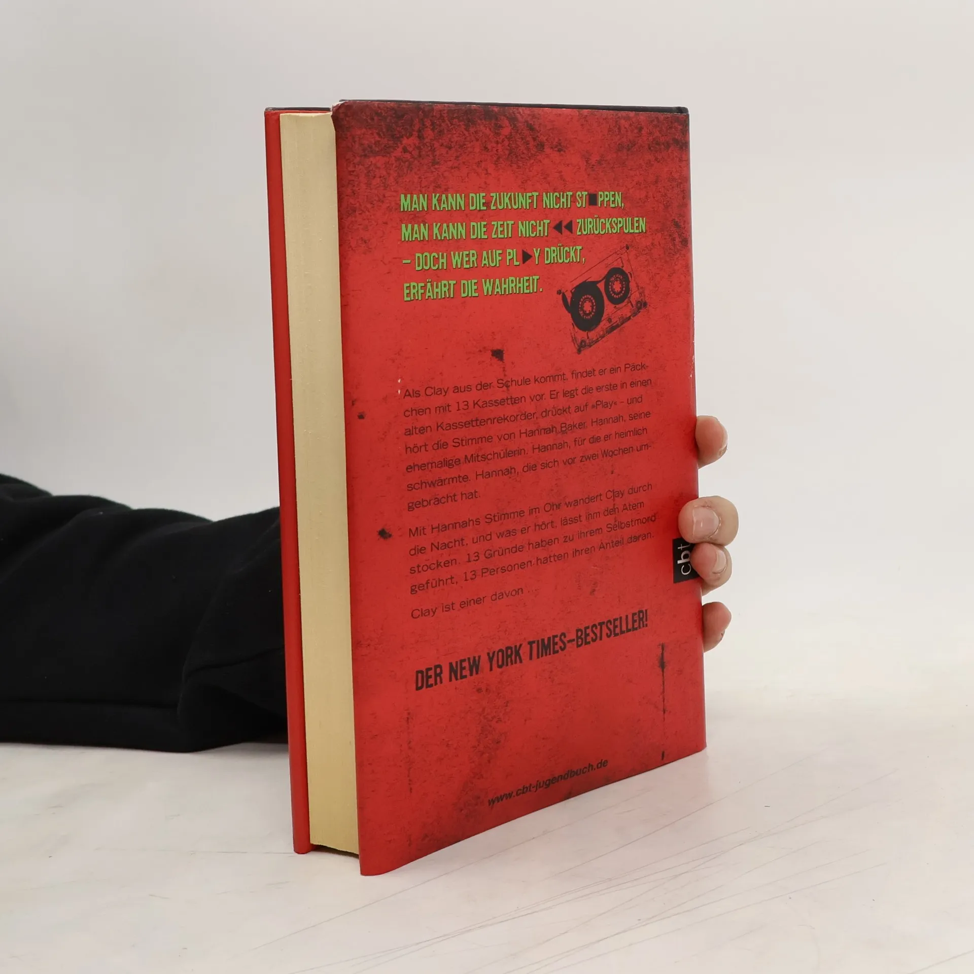 Die Stimme der Toten, ein Ruf nach Leben Als Clay Jensen aus der Schule nach Hause kommt, findet er ein Päckchen mit Kassetten vor. Er legt die erste in einen alten Kassettenrekorder, drückt auf „Play“ – und hört die Stimme von Hannah Baker. Hannah, seine ehemalige Mitschülerin. Hannah, für die er heimlich schwärmte. Hannah, die sich vor zwei Wochen umgebracht hat. Mit ihrer Stimme im Ohr wandert Clay durch die Nacht, und was er hört, lässt ihm den Atem stocken. Dreizehn Gründe sind es, die zu ihrem Selbstmord geführt haben, dreizehn Personen, die daran ihren Anteil haben. Clay ist einer davon ... Ein Roman, der unter die Haut geht.