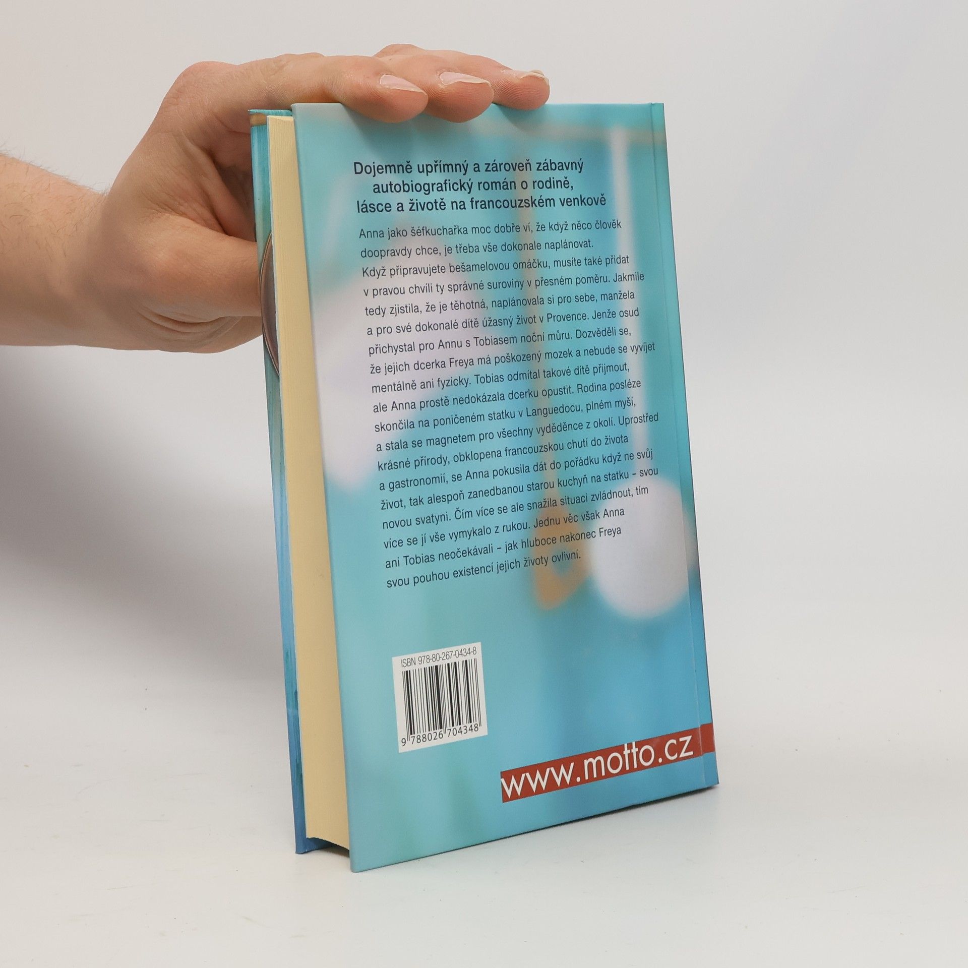 Dojemně upřímný a zároveň zábavný autobiografický román o rodině, lásce a životě na francouzském venkově. Anna jako šéfkuchařka moc dobře ví, že když něco člověk doopravdy chce, je třeba vše dokonale naplánovat. Když připravujete bešamelovou omáčku, musíte také přidat v pravou chvíli ty správné suroviny v přesném poměru. Jakmile tedy zjistila, že je těhotná, naplánovala si pro sebe, manžela a pro své dokonalé dítě úžasný život v Provence. Jenže osud přichystal pro Annu s Tobiasem noční můru. Dozvěděli se, že jejich dcerka Freya má poškozený mozek a nebude se vyvíjet mentálně ani fyzicky. Tobias odmítal takové dítě přijmout, ale Anna prostě nedokázala dcerku opustit. Rodina posléze skončila na poničeném statku v Languedocu, plném myší, a stala se magnetem pro všechny vyděděnce z okolí. Uprostřed krásné přírody, obklopena francouzskou chutí do života a gastronomií, se Anna pokusila dát do pořádku, když ne svůj život, tak alespoň zanedbanou starou kuchyň na statku – svou novou svatyni. Čím více se ale snažila situaci zvládnout, tím více se jí vše vymykalo z rukou. Jednu věc však Anna ani Tobias neočekávali – jak hluboce nakonec Freya svou pouhou existencí jejich životy ovlivní.