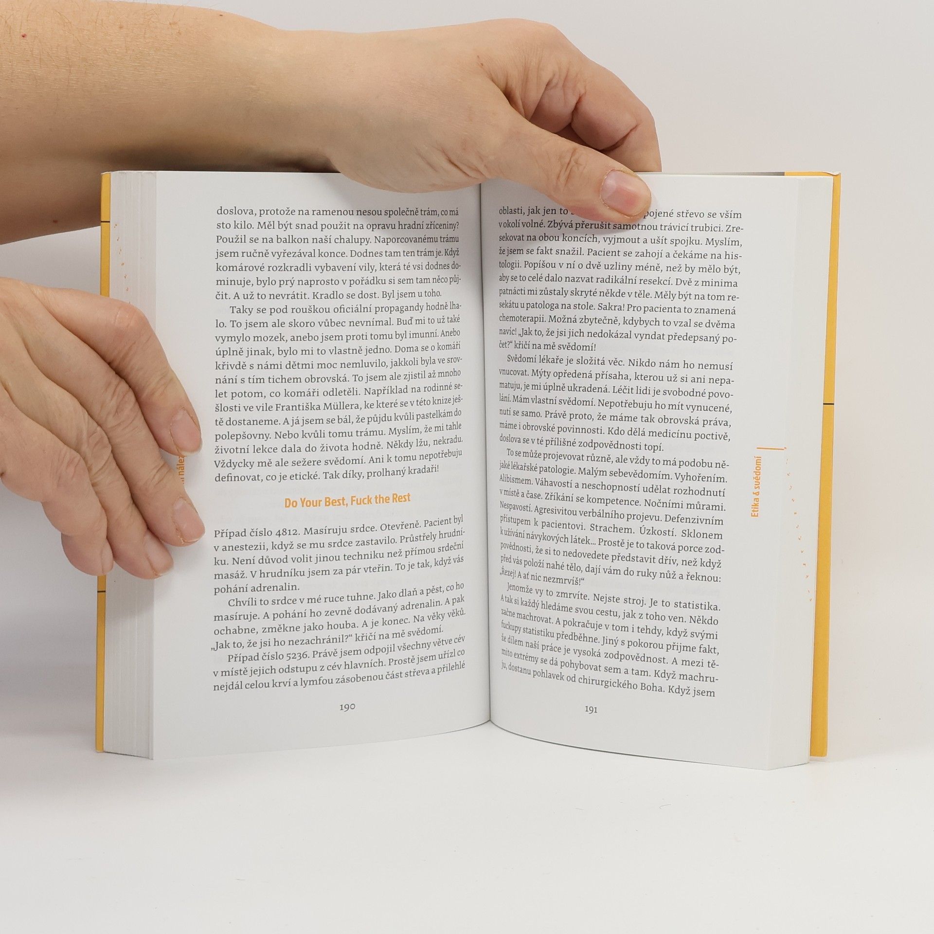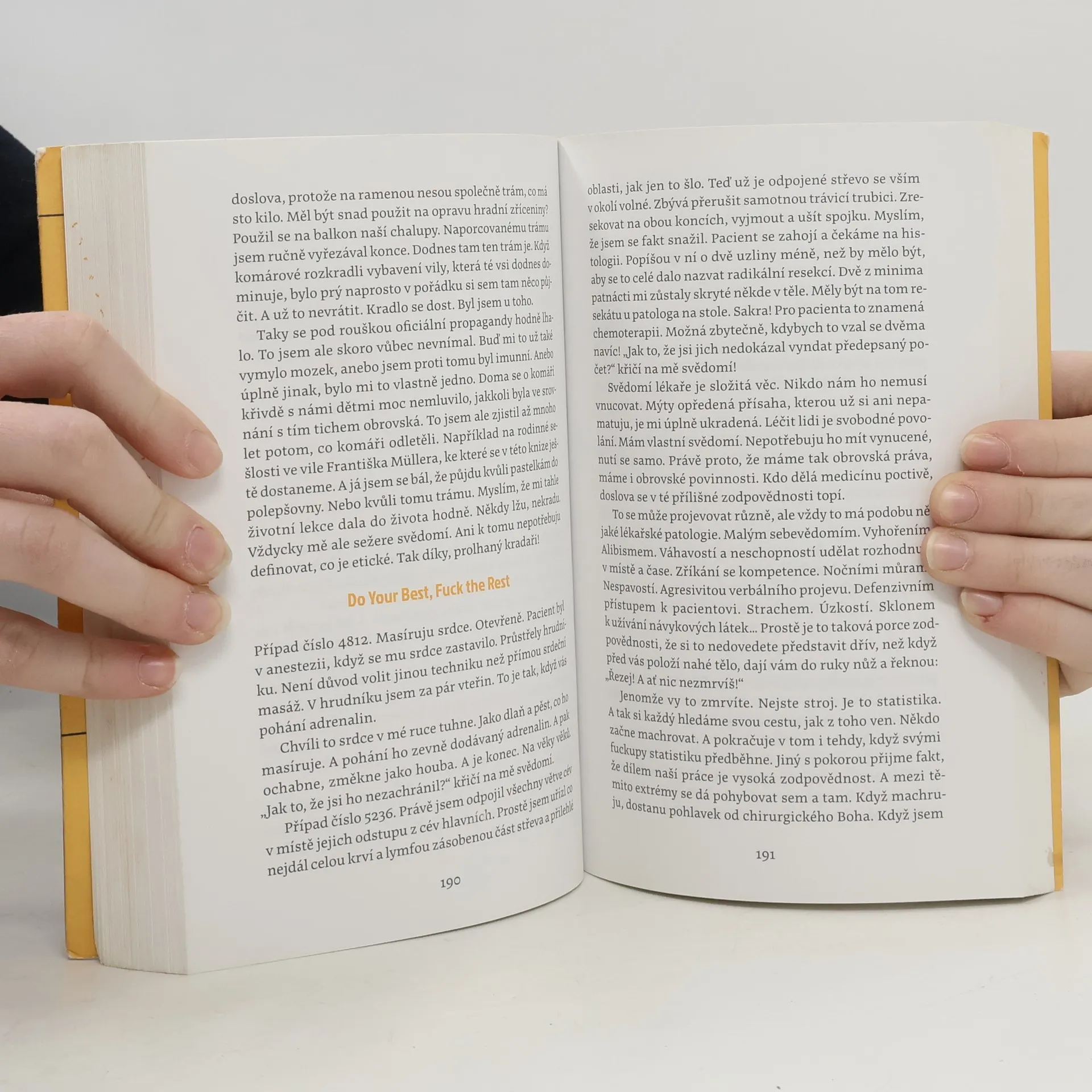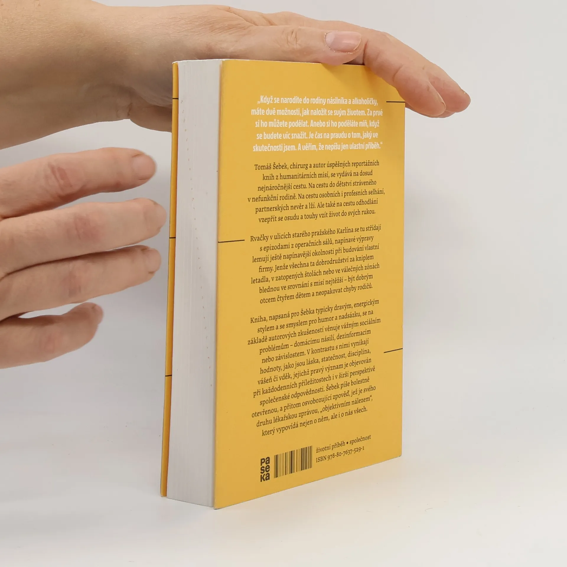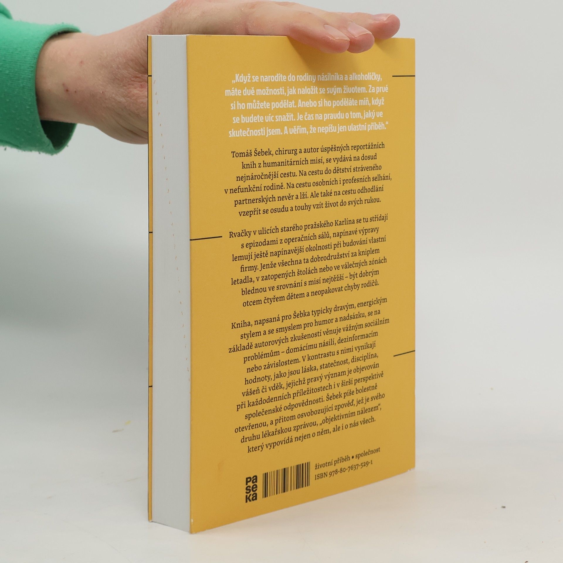 Tomáš Šebek, chirurg a autor úspěšných reportážních knih z humanitárních misí, se vydává na dosud nejnáročnější cestu. Na cestu do dětství stráveného v nefunkční rodině. Na cestu osobních i profesních selhání, partnerských nevěr a lží. Ale také na cestu odhodlání vzepřít se osudu a touhy vzít život do svých rukou. Rvačky v ulicích starého pražského Karlína se tu střídají s epizodami z operačních sálů, napínavé výpravy lemují ještě napínavější okolnosti při budování vlastní firmy. Jenže všechna ta dobrodružství za kniplem letadla, v zatopených štolách nebo ve válečných zónách blednou ve srovnání s misí nejtěžší – být dobrým otcem čtyřem dětem a neopakovat chyby rodičů. Kniha, napsaná pro Šebka typicky dravým, energickým stylem a se smyslem pro humor a nadsázku, se na základě autorových zkušeností věnuje vážným sociálním problémům – domácímu násilí, dezinformacím nebo závislostem. V kontrastu s nimi vynikají hodnoty, jako jsou láska, statečnost, disciplína, vášeň či vděk, jejichž pravý význam je objevován při každodenních příležitostech i v širší perspektivě společenské odpovědnosti. Šebek píše bolestně otevřenou, a přitom osvobozující zpověď, jež je svého druhu lékařskou zprávou, „objektivním nálezem“, který vypovídá nejen o něm, ale i o nás všech.