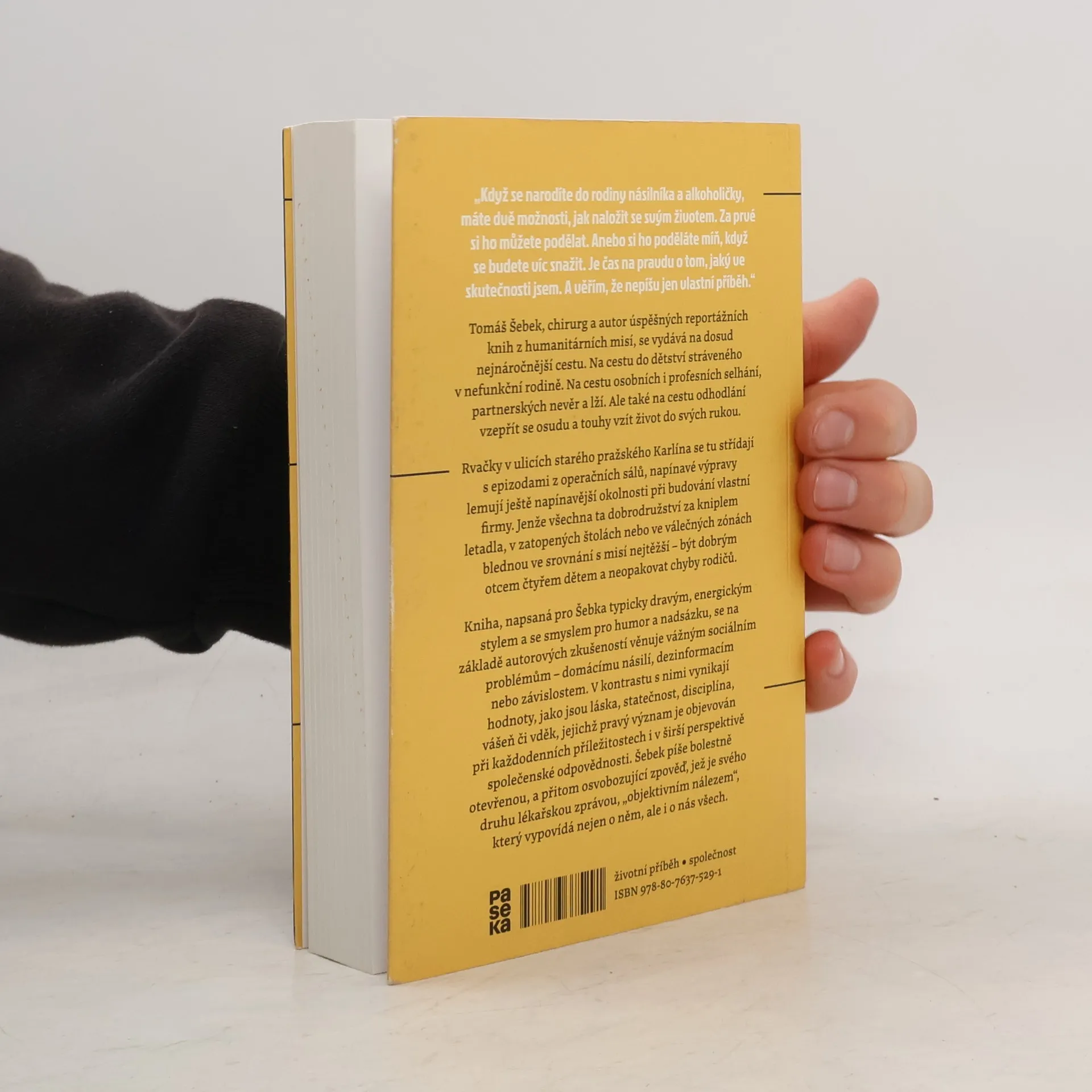 Tomáš Šebek, chirurg a autor úspěšných reportážních knih z humanitárních misí, se vydává na dosud nejnáročnější cestu. Na cestu do dětství stráveného v nefunkční rodině. Na cestu osobních i profesních selhání, partnerských nevěr a lží. Ale také na cestu odhodlání vzepřít se osudu a touhy vzít život do svých rukou. Rvačky v ulicích starého pražského Karlína se tu střídají s epizodami z operačních sálů, napínavé výpravy lemují ještě napínavější okolnosti při budování vlastní firmy. Jenže všechna ta dobrodružství za kniplem letadla, v zatopených štolách nebo ve válečných zónách blednou ve srovnání s misí nejtěžší – být dobrým otcem čtyřem dětem a neopakovat chyby rodičů. Kniha, napsaná pro Šebka typicky dravým, energickým stylem a se smyslem pro humor a nadsázku, se na základě autorových zkušeností věnuje vážným sociálním problémům – domácímu násilí, dezinformacím nebo závislostem. V kontrastu s nimi vynikají hodnoty, jako jsou láska, statečnost, disciplína, vášeň či vděk, jejichž pravý význam je objevován při každodenních příležitostech i v širší perspektivě společenské odpovědnosti. Šebek píše bolestně otevřenou, a přitom osvobozující zpověď, jež je svého druhu lékařskou zprávou, „objektivním nálezem“, který vypovídá nejen o něm, ale i o nás všech.