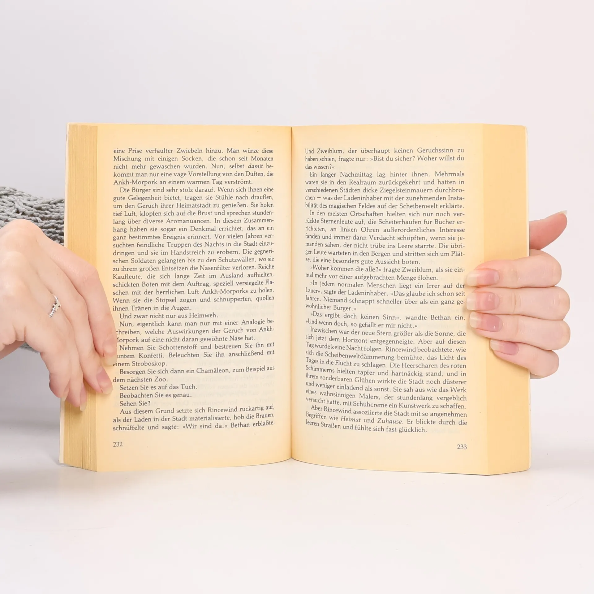 Als der tolpatschige Magier Rincewind über den Rand der Scheibenwelt fällt, kann er sich nur mithilfe der acht mächtigsten Zaubersprüche retten, die er in sich trägt. Fortan verbringt er seine Zeit damit, sich mit intelligenten Bäumen zu unterhalten. Jedoch hätte er nie gedacht, dass er einmal zum Retter des ganzen Planeten werden wird. Und auch in einem anderen Teil der Scheibenwelt gerät das magische Gleichgewicht gehörig durcheinander … Zwei unerhört komische Romane aus dem berühmten