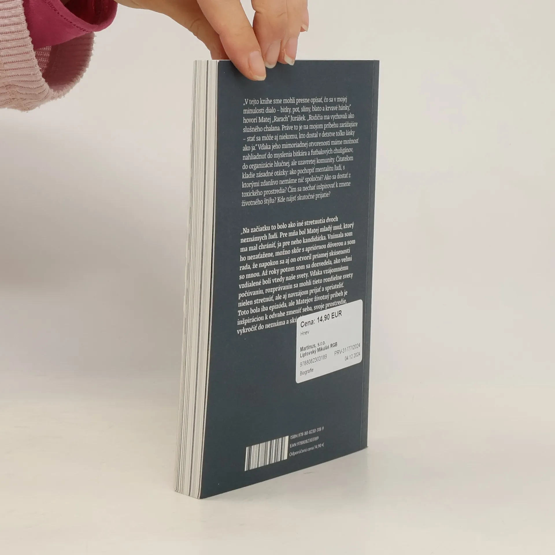 „V tejto knihe sme mohli presne opísať, čo sa v mojej minulosti dialo – bitky, pot, sliny, blato a krvavé hánky,“ hovorí Matej „Rarach“ Jurášek. „Rodičia ma vychovali ako slušného chalana. Práve to je na mojom príbehu zarážajúce – stať sa môže aj niekomu, kto dostal v detstve toľko lásky ako ja.“ Vďaka jeho mimoriadnej otvorenosti máme možnosť nahliadnuť do myslenia bitkára a futbalových chuligánov, do organizácie hlučnej, ale uzavretej komunity. Čitateľom kladie zásadné otázky: ako pochopiť mentalitu ľudí, s ktorými zdanlivo nemáme nič spoločné? Ako sa dostať z toxického prostredia? Čím sa nechať inšpirovať k zmene životného štýlu? Kde nájsť skutočné prijatie?