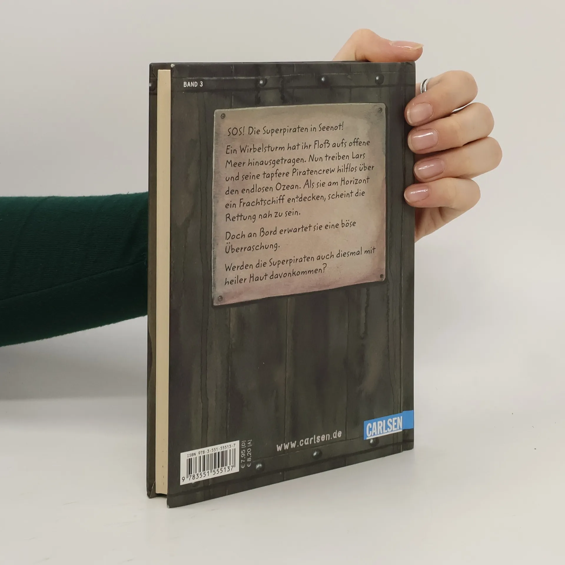 SOS! Die Superpiraten in Seenot! Ein Wirbelsturm hat ihr Floß aufs offene Meer hinausgetragen. Nun treiben Lars und seine tapfere Piratencrew hilflos über den endlosen Ozean. Als sie am Horizont ein Frachtschiff entdecken, scheint die Rettung nah zu sein. Doch an Bord erwartet sie eine böse Überraschung. Werden die Superpiraten auch diesmal mit heiler Haut davonkommen?