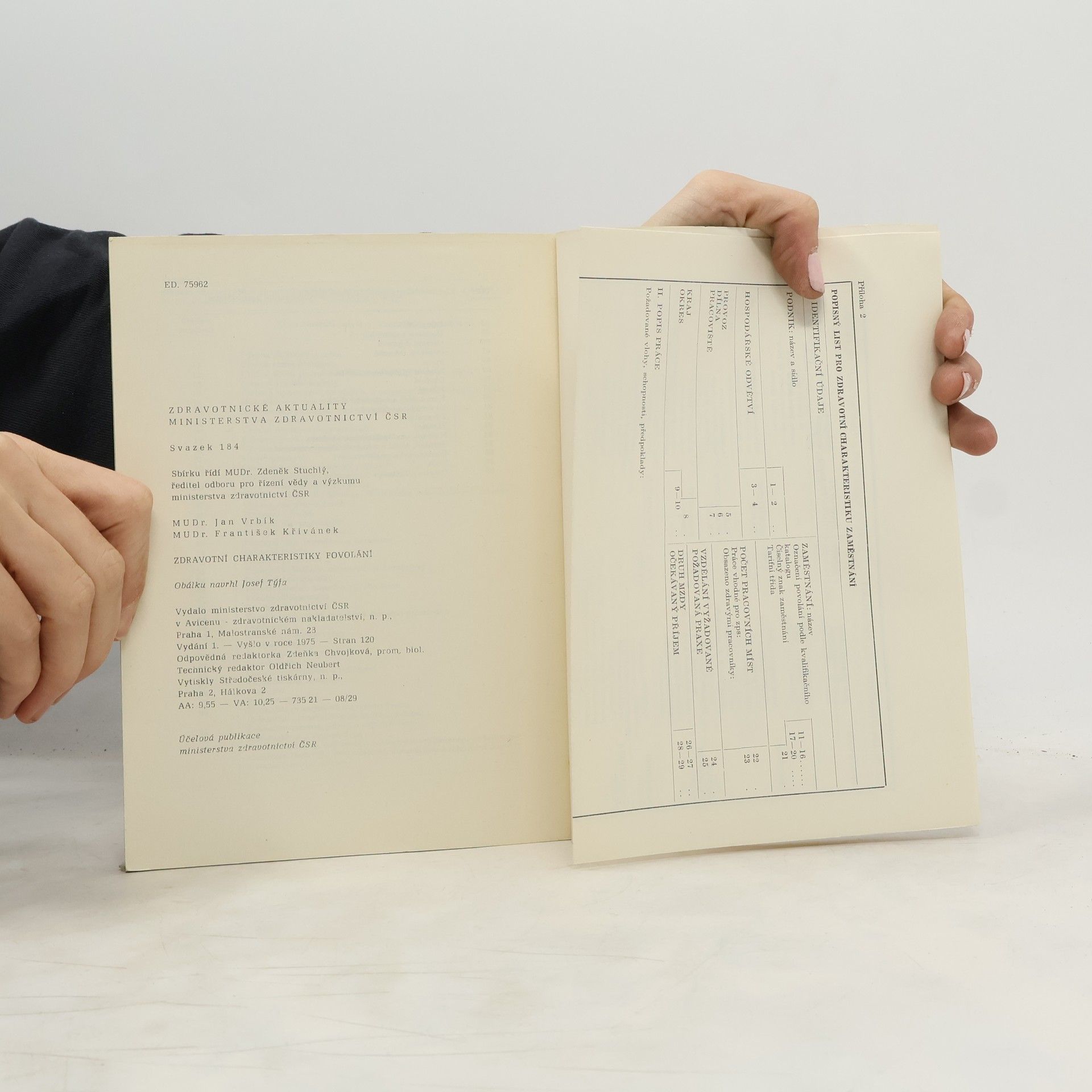 Zdravotní charakteristiky povolání, František Křivánek, Jana Vrbíková