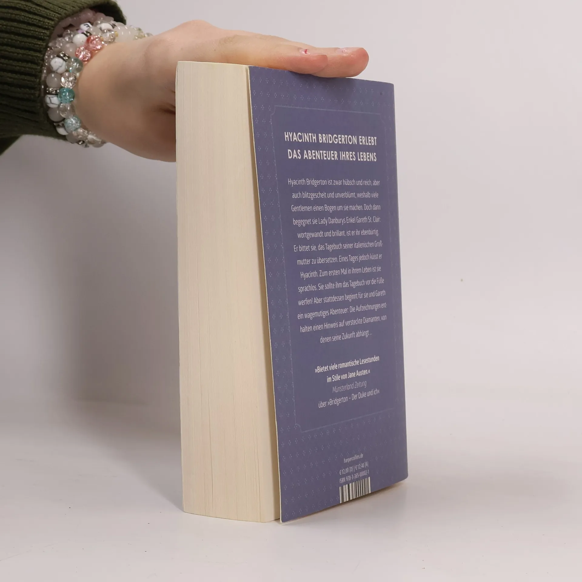 Hyacinth Bridgerton erlebt das Abenteuer ihres Lebens Hyacinth Bridgerton ist zwar hübsch und reich, aber auch blitzgescheit und unverblümt, weshalb viele Gentlemen einen Bogen um sie machen. Doch dann begegnet sie Lady Danburys Enkel Gareth St. Clair: wortgewandt und brillant, ist er ihr ebenbürtig. Er bittet sie, das Tagebuch seiner italienischen Großmutter zu übersetzen. Eines Tages jedoch küsst er Hyacinth. Zum ersten Mal in ihrem Leben ist sie sprachlos. Sie sollte ihm das Tagebuch vor die Füße werfen! Aber stattdessen beginnt für sie und Gareth ein wagemutiges Abenteuer: Die Aufzeichnungen enthalten einen Hinweis auf versteckte Diamanten, von denen seine Zukunft abhängt ... »Bietet viele romantische Lesestunden im Stile von Jane Austen.« Münsterland Zeitung über »Bridgerton– Der Duke und ich« »Das siebte und zweitletzte Buch der Bridgerton-Reihe fesselt mehr denn je.« Tize